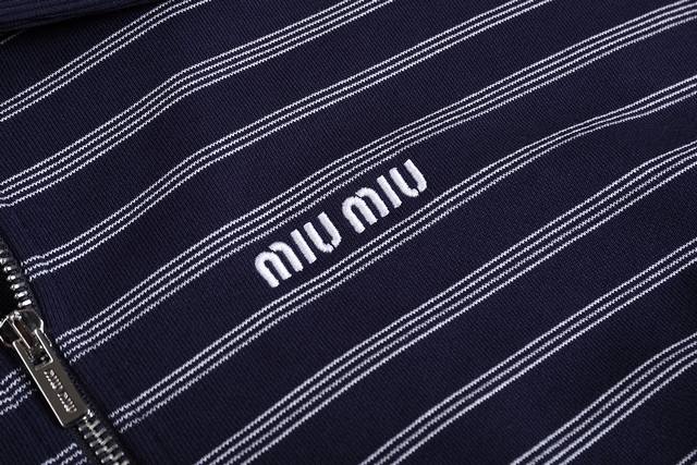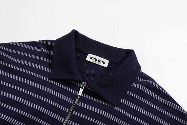 Original Quality Miu Miu 25Ss Blue and White Striped Polo Sweatshirt Color: Soli