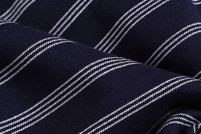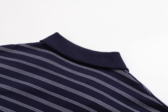 Original Quality Miu Miu 25Ss Blue and White Striped Polo Sweatshirt DDD Color: Solid Color Ddd Size: Ddd Made with 50-count 400g double-ply worsted cotton yarn, the yarn is fine and strong, ensuring the fabric is lightweight, smooth, and not easily deformed. A unique striped weave was developed for this item, achieving a three-dimensional texture through precise adjustment of warp and weft yarn density, requiring professional equipment and strict quality control. The striped yarns are pre-dyed in batches, and then the color difference is aligned through a color-matching process to ensure color saturation and clear boundaries between stripes. DDD The neckline is hand-stitched with a special curved needle, where artisans use a special curved needle to connect the neckline ribbing to the inner loops at the seam of the garment, leaving no visible stitches. The tension of the stitching is controlled by hand to maintain the natural curve and elasticity of the neckline, avoiding the stiffness caused by machine sewing. DDD uses a precise matching process for its fabric stripes and checks. Before cutting, the fabric stripes and checks must be perfectly aligned, with an error controlled within 1mm, ensuring continuous stripes without any breaks after splicing. Due to this matching requirement, the fabric utilization rate is only 60%-70%, far exceeding the 90% of ordinary cut pieces, significantly increasing costs. DDD uses a Japanese Tajima digital embroidery machine, completing complex patterns at a speed of 800 stitches per minute, with a stitch density of 0.3mm. A relief effect is created through padding embroidery, and the embroidery thread undergoes anti-wrinkle treatment to ensure it does not deform after washing. From yarn customization to garment production, DDD undergoes 27 processes, with the matching and cutting process alone taking three times longer than for a regular garment. The daily output of hand-sewn pieces is less than 10 pieces, demonstrating the luxury brand's extreme attention to detail.