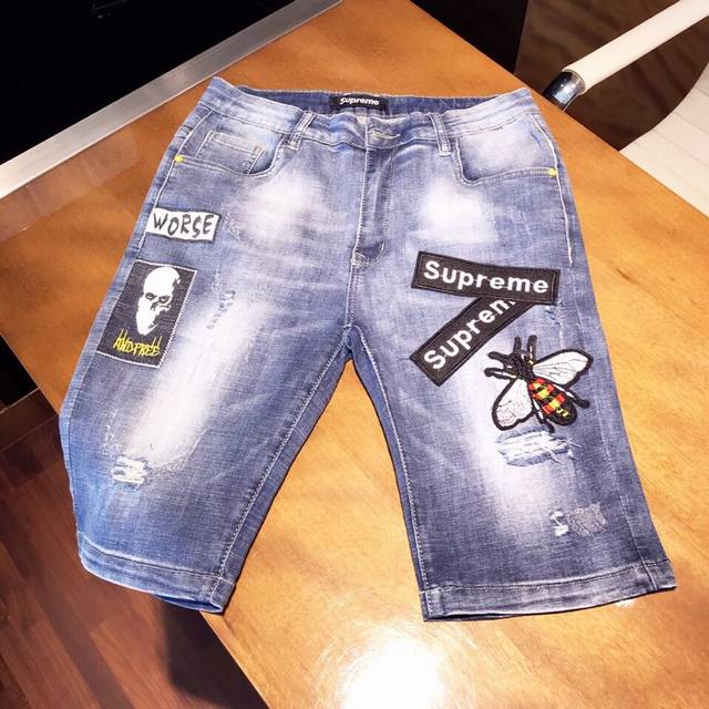 Original Supreme Denim Shorts - Top-quality imported original denim shorts, crafted with original hardware and accessories. Features heavy-duty embroidered labels, custom-made denim fabric, and is a perfect replica of the original. We welcome you to try them on at a boutique before purchasing. Quality products stand up to comparison. Sizes: 28-36 DDD