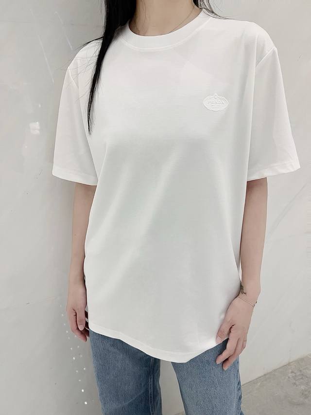 pd Classic Logo Embossed Short-Sleeve T-Shirt Ddd This Pra** short-sleeve T-shirt exudes fashionable charm. The classic crew neck design fits the neckline comfortably and is versatile, easily adaptable to various occasions. Available in pure off-white and mysterious cool black to meet different styling needs. The fabric is made of 100% polyamide fiber and other materials, with a superior texture, soft and delicate touch, and excellent breathability and comfort, making it skin-friendly and burden-free to wear. Ddd The exquisite brand logo is subtly presented on the chest, outlined with delicate embroidery, highlighting unique identity and luxurious taste, silently telling the story of Pra**'s superior quality and profound heritage. The loose fit is extremely forgiving of the figure, allowing for freedom of movement and ease of wear. Whether worn alone for a casual look or layered with a jacket for a more sophisticated style, it's easy to pull off, adding points to your fashionable look. Ddd Colors: White, Black Ddd Sizes: Xs-L DDD Ddd