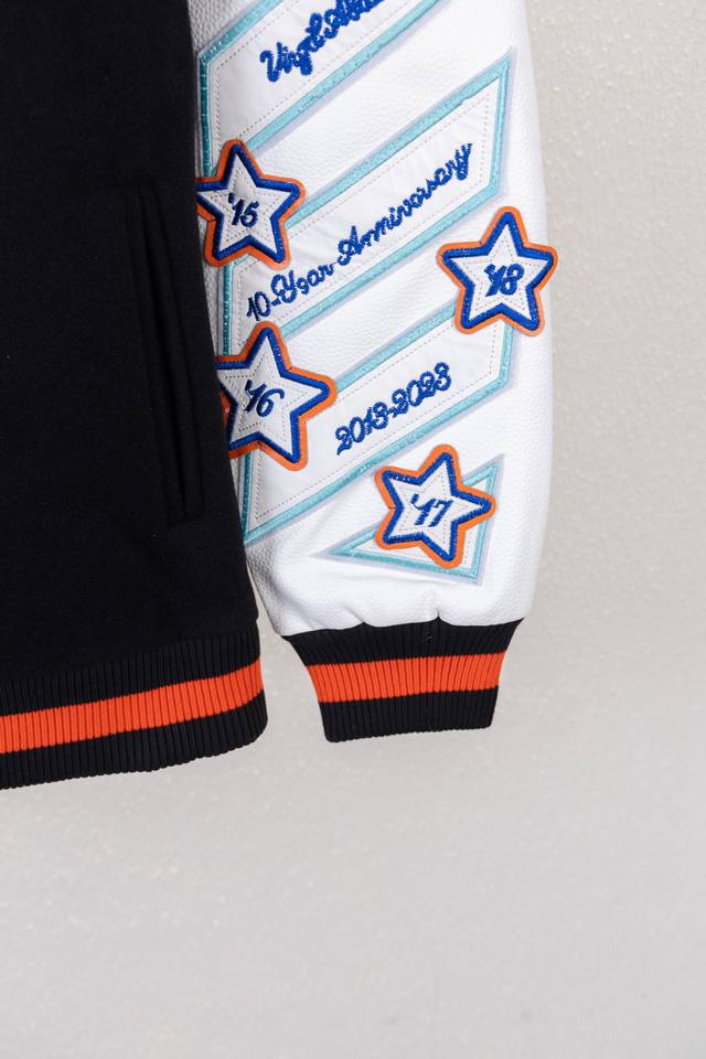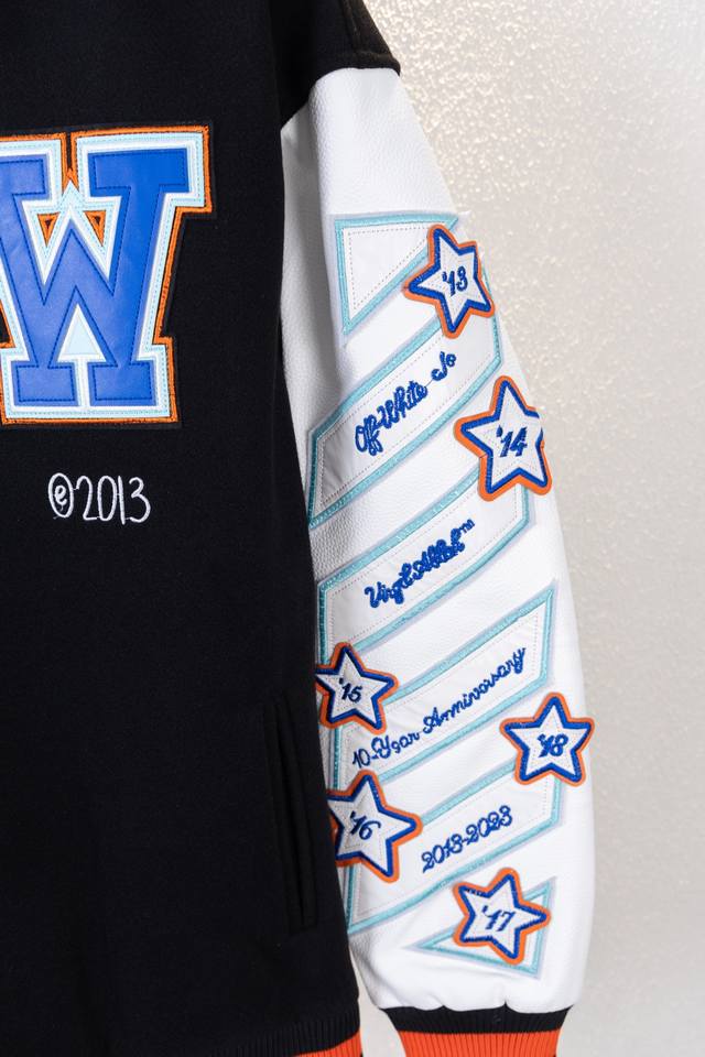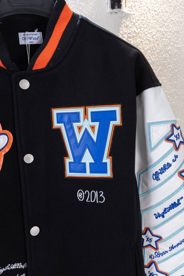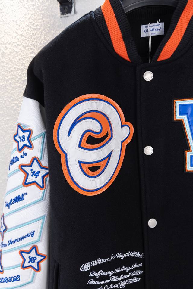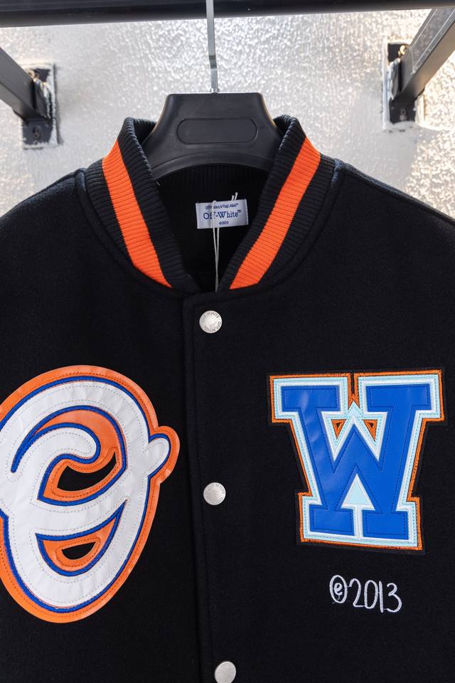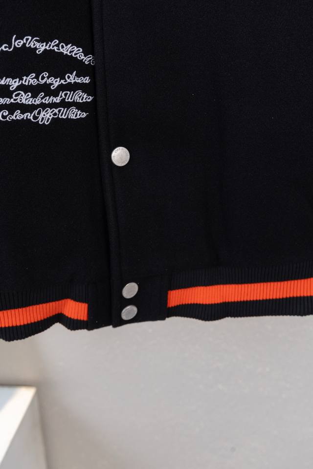 pg Top-tier version Ddd Style No. K6186 Ddd Off 21Fw unisex couple heavyweight wool embroidered baseball jacket! DDD A legendary item, Off, with its distinctive logo and understated luxury, has occupied the high ground of street fashion and is loved by top European and American celebrities. In the era of retro style, Off will not let you fall behind! Off 21Fw heavyweight, couple's wool patchwork leather sleeves, heavy-duty embroidered baseball jacket. Off always cleverly blends street aesthetics with high-end quality. This baseball jacket is made of exaggerated and eye-catching appliqu