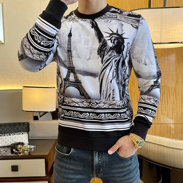 Post-Chinese New Year Return/Exchange Dg Ss Autumn Hot New Arrival, Top-Quality Fashion Printed Sweatshirt, a classic piece that comes out every year. Favored and recommended by many celebrities, made with selected high-end European cotton blend fabric, meticulous craftsmanship, original hardware and logo design, soft and smooth, dense texture! Stylish and fashionable when worn! One of the impeccable must-have styles for autumn! M-3XL Model 178cm, 145kg, wearing size L