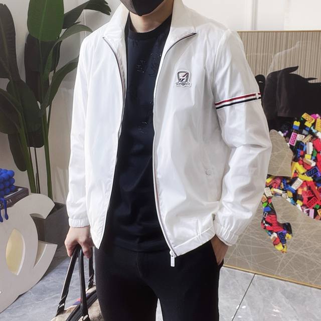 Post-Chinese New Year return/exchange Tb Ss Spring Hot Selling Thin Jacket, custom high-quality polyester fiber fabric! Top fashion brand element logo design, all three labels are complete! Original hardware accessories, smooth lines, exquisite craftsmanship, superb fit, comfortable fabric, windproof and warm, easy to match and very stylish, a must-have for casual men! Sizes: M-3XL. Model is 178cm tall and weighs 145kg, wearing L.