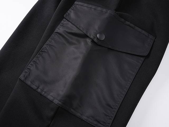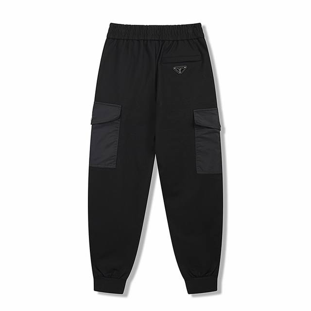 prad* Recycled Nylon Double Pocket Cotton Fleece Workwear Sweatpants (Ddd) Made with cotton fleece fabric, the workwear pockets are made of recycled nylon. The waistband features elasticated stitching, and the pockets have flaps with snap closures. A concealed pocket design is incorporated into the back patch pocket, with a zipper closure. The pocket opening is bound with 1.5cm for better concealment. An enamel triangle label is added for embellishment. The legs are tapered with a flat, elasticated hem. Casual fit. Sizes: Xs, S, M, L, DDD