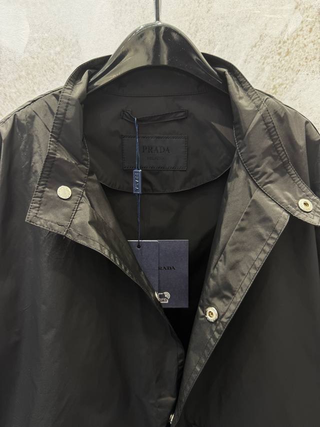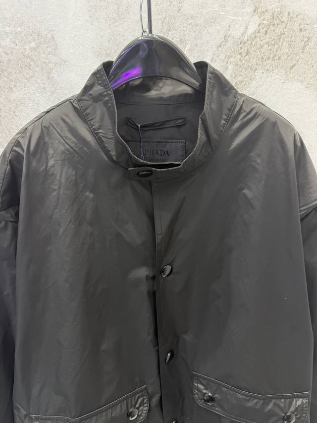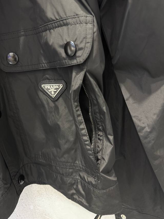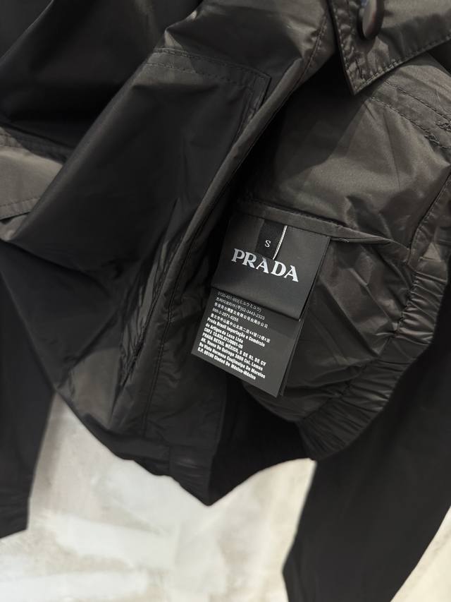 prad Recycled Nylon Stand Collar Double Pocket Zipper Side Pocket Button-Down Jacket, Original Single Item with Complete Labels, High-End Version, Customized Fabric, Highly Breathable and Comfortable, Impeccable Details, Brand Elements and Design Concept, High Quality, Delicate and Soft Feel, Casual Cut, Excellent Fit, Sizes: Xs, S, M, L, DDD