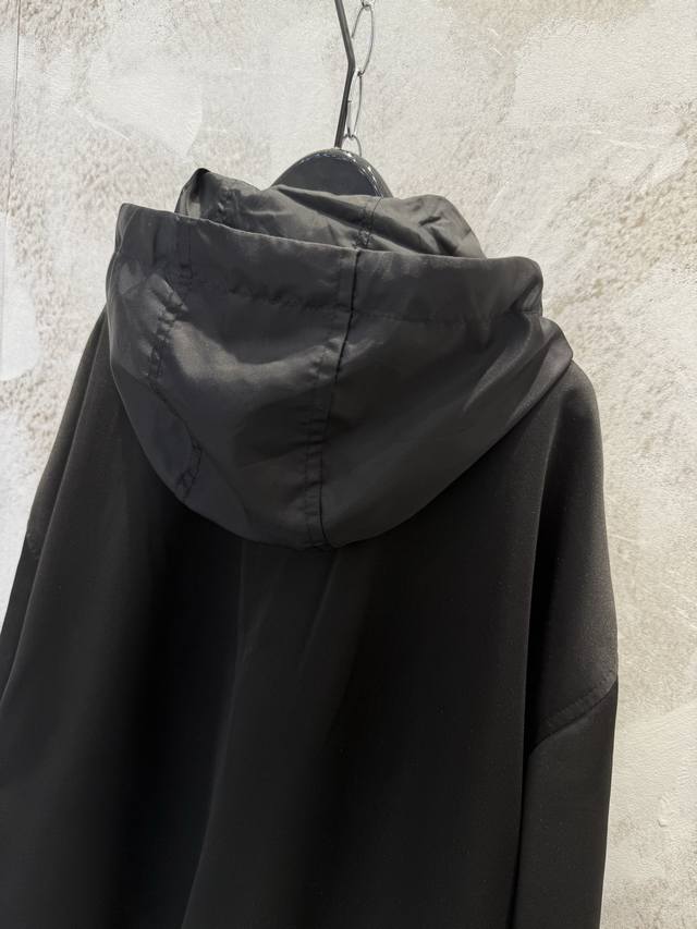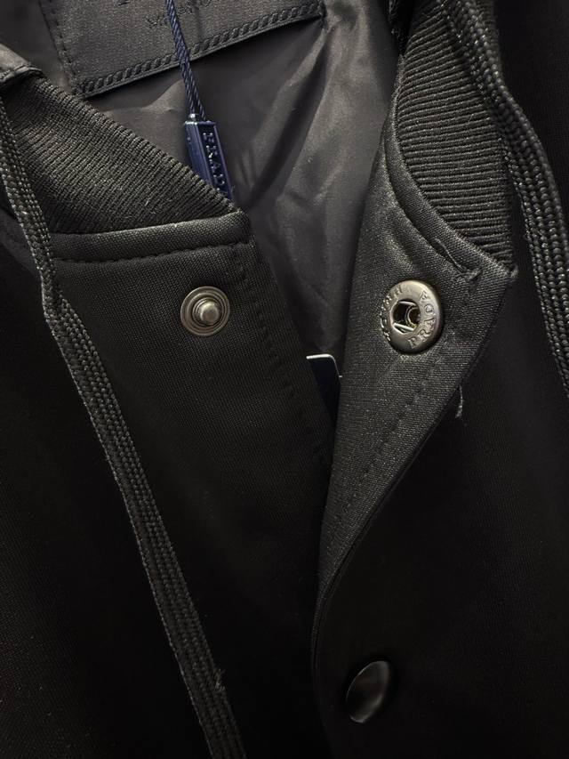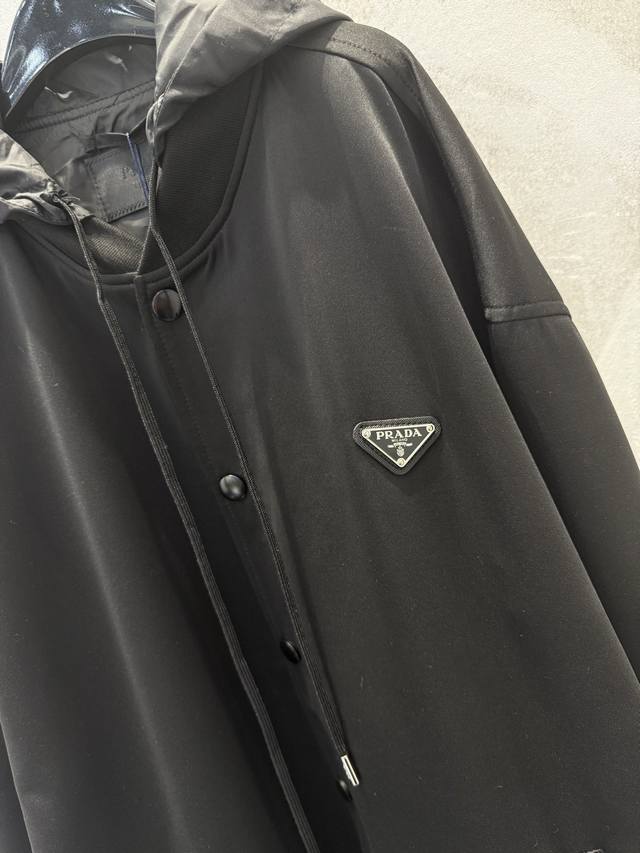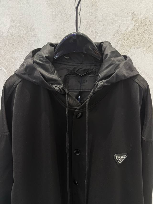 prad Triangle Logo Nylon Patchwork Hooded Jacket DDD prad's popular hooded baseball jacket is back! The fit is super flattering and it's a cool jacket. Ddd The three-dimensional cut, iconic triangle logo on the chest, snap buttons, elastic cord webbing, and various design details showcase its simple yet sophisticated nature. Ddd The space cotton and nylon patchwork hood and nylon lining make it incredibly cool and stylish, combining practicality and trendiness for a street-style vibe. Ddd A versatile jacket for commuting, highly recommended! Sizes: S, M, L DDD