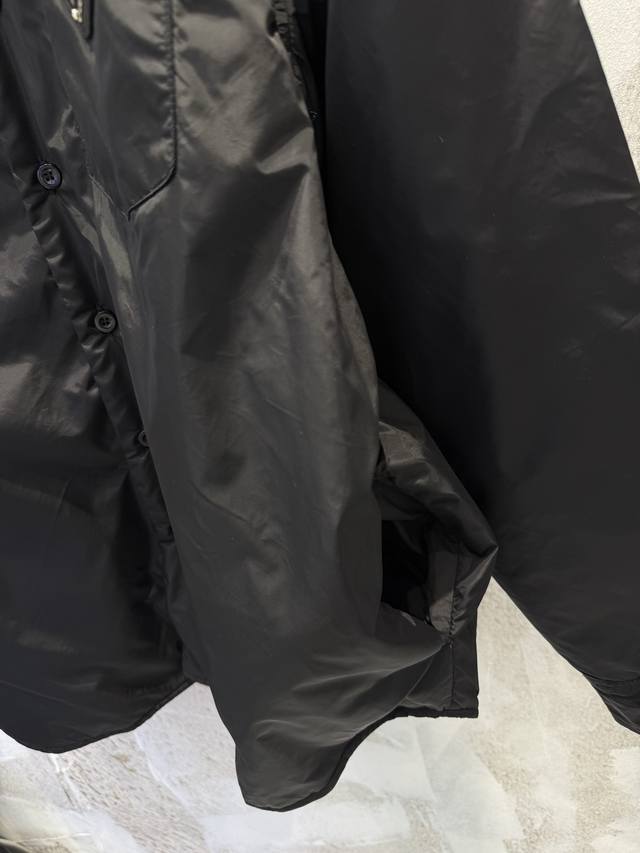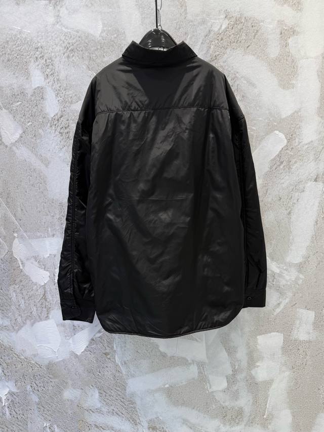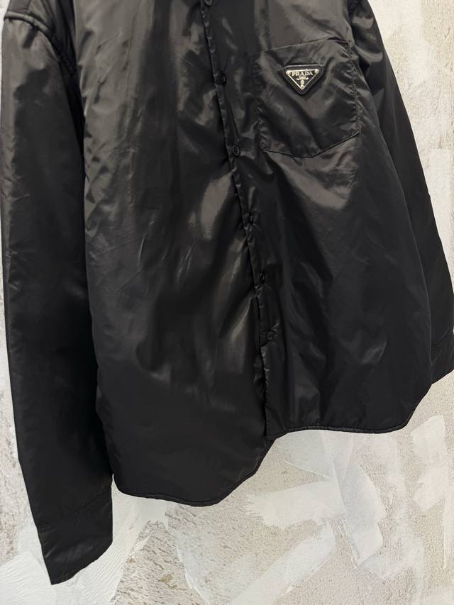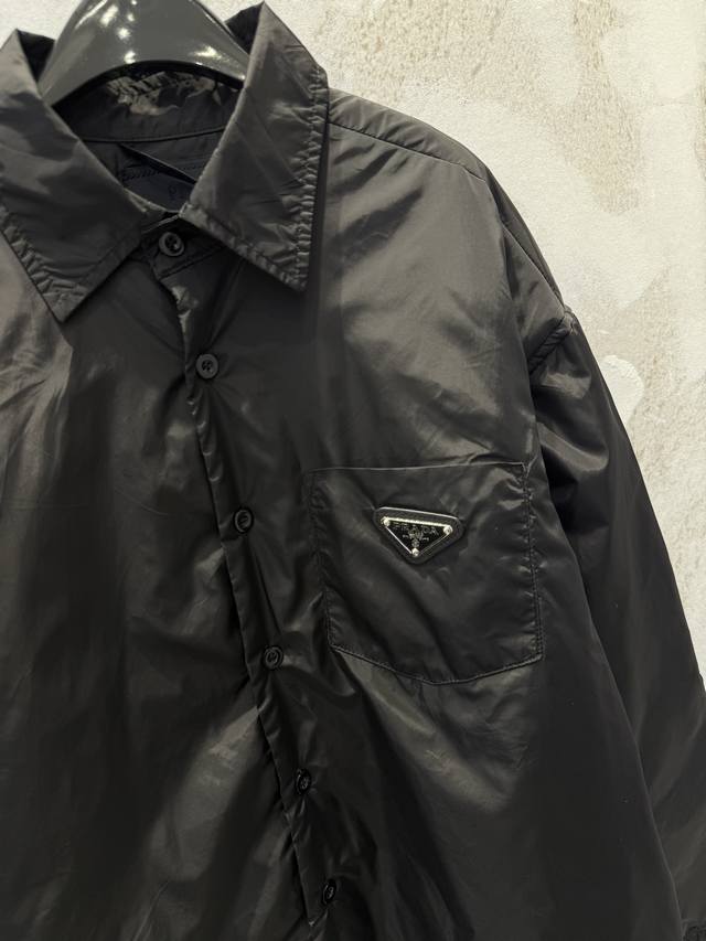 prad*25Fw Autumn/Winter New Triangle Leather Label Recycled Nylon Shirt-Style Cotton Jacket Ddd Exclusive Yb Development! High-Quality Production! Unisex Style. The dark brown nylon fabric has a high-end sheen. The shirt collar and single-breasted button design are neat and casual. The enamel triangle logo on the chest is a delicate finishing touch. The loose fit is flattering and hides any unwanted curves. It's perfect for layering. Pair it with a matching handbag for a luxurious yet relaxed look. It's a must-have for layering in autumn and winter, balancing casualness and sophistication perfectly. Sizes: Xs, S, M, L, DDD