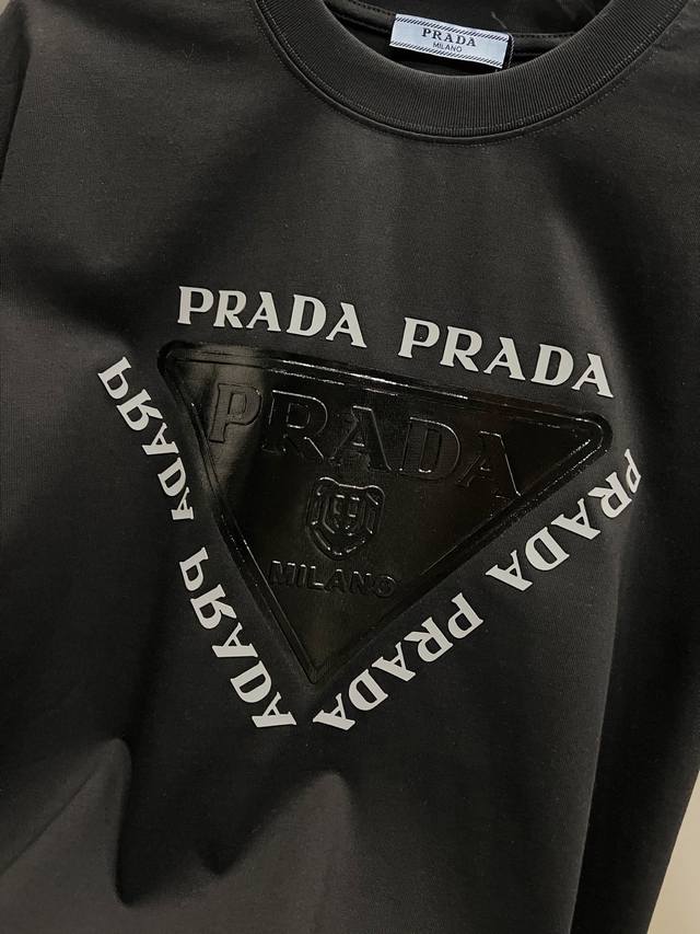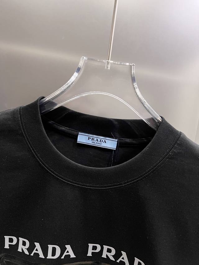 Prada 2025 Autumn/Winter New Short-Sleeve T-Shirt, Unique Classic 3D Letter Glossy Print, High-End Version! Custom-made fabric for superior breathability and comfort. Unisex loose fit, sizes S, M, L, XL, XL. Available in black and white.