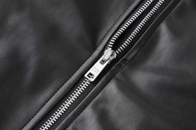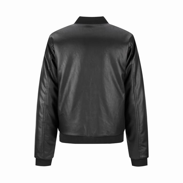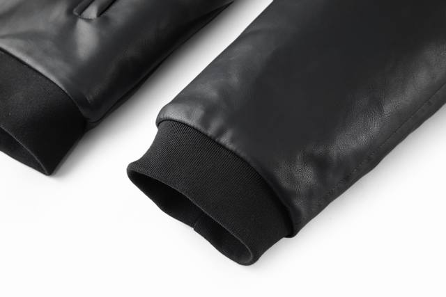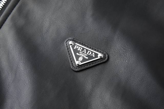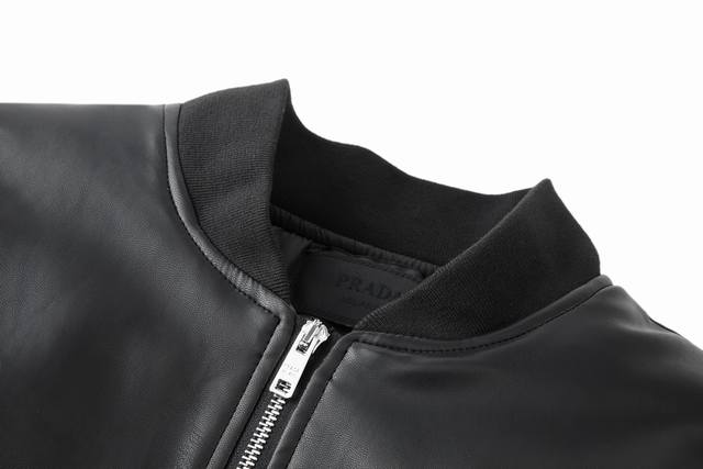 Prada Pilot Lambskin Zip-Up Jacket DDD Fabric: Made of 1.2mm thick lambskin, this jacket is a 1:1 replica of the original fabric from the boutique, featuring a dark black lychee-textured finish and wrinkle-resistant material. DDD Fabric: Ribbed fabric is made of 1*1 mercerized pure cotton, 420g thick. This ribbed fabric is very comfortable against the skin and does not easily pill. DDD Accessories 1: The zipper uses a size 5 zipper pull with a silver-plated finish and the brand's iconic logo laser-engraved on the surface. The zipper teeth are European style, very smooth and not easy to get stuck. DDD Accessories 2: The leather label is made of top-grain cowhide double-layer composite, with the brand's iconic logo laser-plated on the surface. DDD This lambskin lychee-textured pilot jacket reinterprets the classic silhouette with carefully treated soft leather that adds depth and personality, showcasing retro charm. The center zipper closure and stand-up collar create a minimalist style, while raglan sleeves and knitted cuffs add comfort. Ddd Lined, regular fit, center zip closure, crew neck, raglan sleeves and knitted cuffs, knitted trim, triangular logo at the center back, trims: custom 1:1 washed label, custom 1:1 white zip closure, custom 1:1 leather toe patch, custom 1:1 pebbled lambskin, custom 1:1 mercerized ribbed leather, sizes: S, M, L, Ddd, color: black, style number: 86179.
