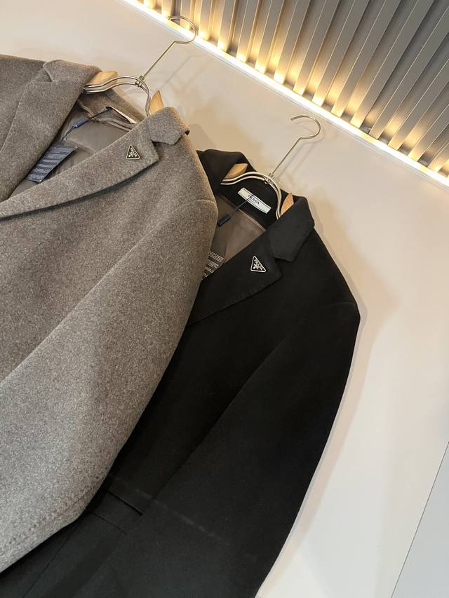 prad*A Puda 2025 Autumn/Winter Casual Wool Suit Jacket, the latest fashionable casual jacket. This jacket is made from Puda's professional custom wool fabric, with a clean, smooth, and lustrous surface. The texture is evident even through the screen. It is comfortable, lightweight, and not stuffy to wear. Exquisite hardware accessories and logo embellishments! The hardware logo pattern design perfectly enhances the overall luxurious feel, exuding a high-end luxury vibe at first glance. Sizes: M
