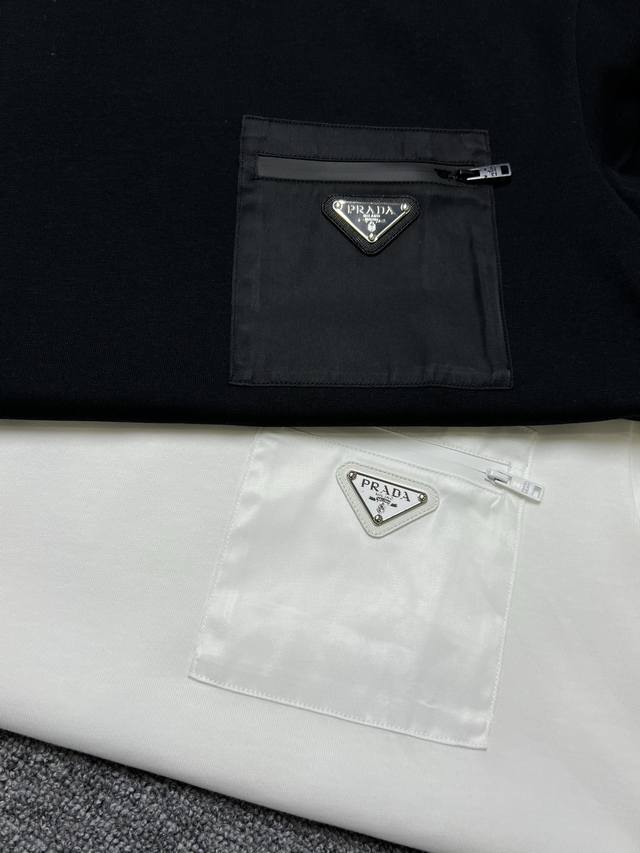 / Prada Short-Sleeve T-Shirt Colors: Black, White Craftsmanship: Triangle Pocket