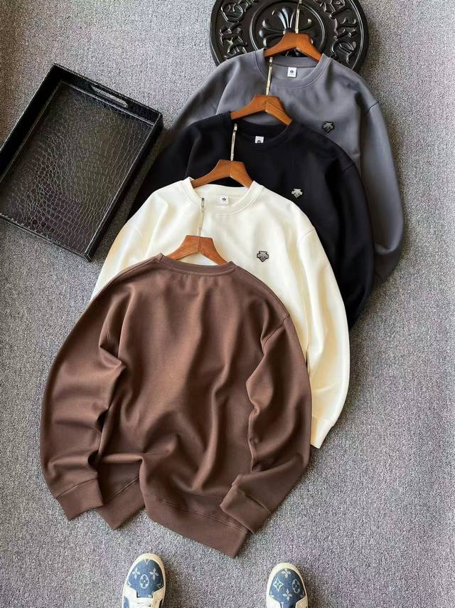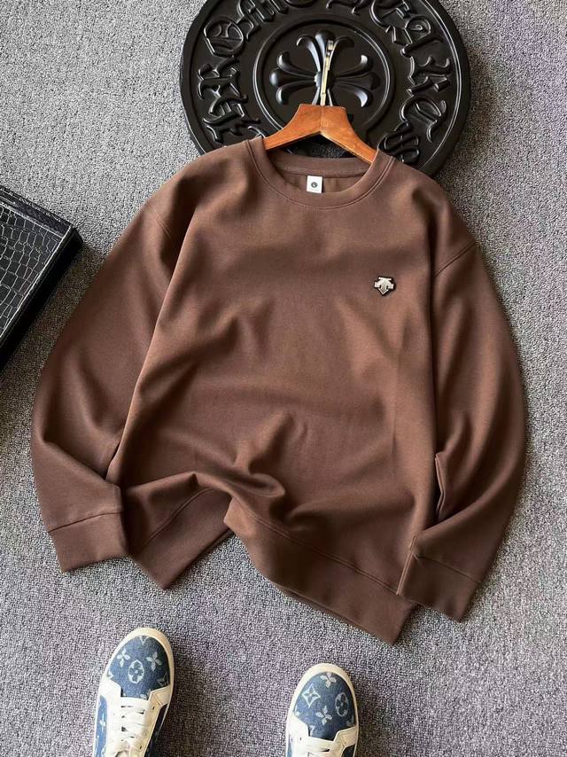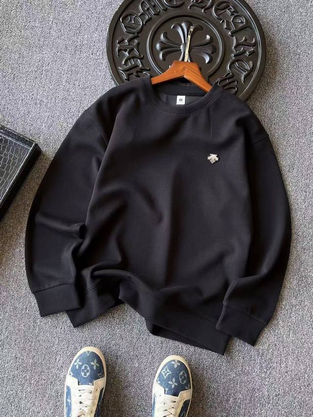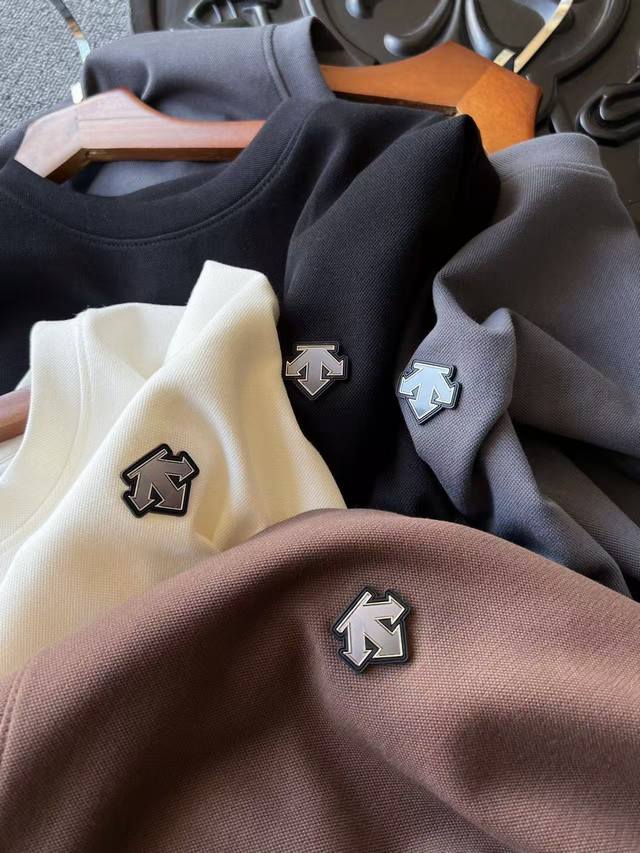 Detail after detail! Descente's new high-end crewneck sweatshirt! Exquisite and simple, it comes in a pure milky white, premium black, mocha, and cement gray colorway. The Descente T-label is made of acrylic tungsten steel and is outlined with silicone, creating a refined look. All seams are double-stitched for exquisite craftsmanship!