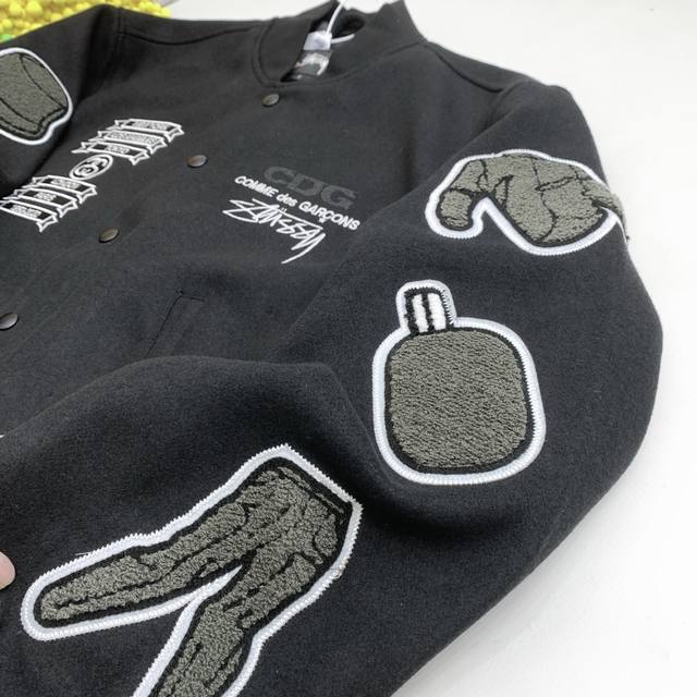 Premium wool quality Stussy x Cdg 20Ss co-branded Varsity Jacket. One of the hottest vibe-style Stussy pieces of the past two years, highly recommended by bloggers and influencers alike!
