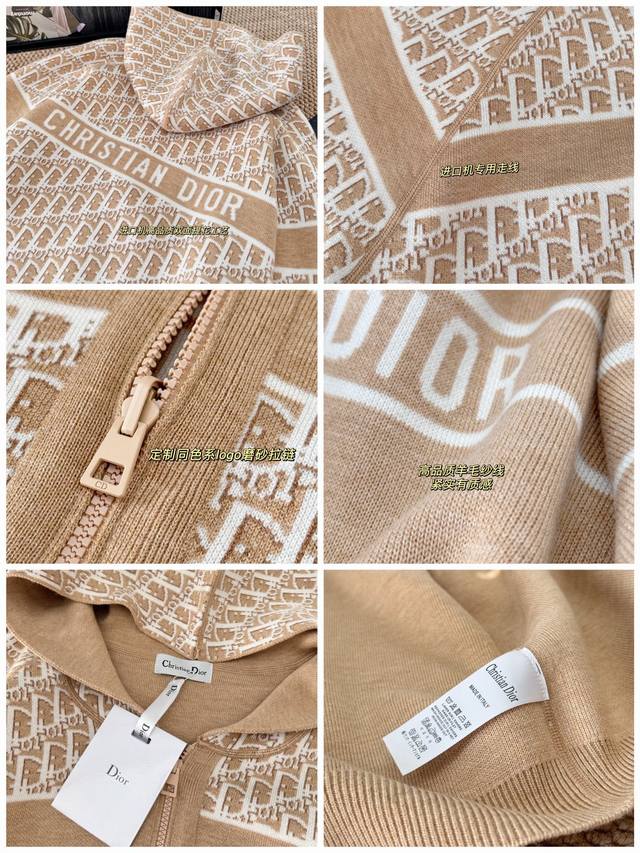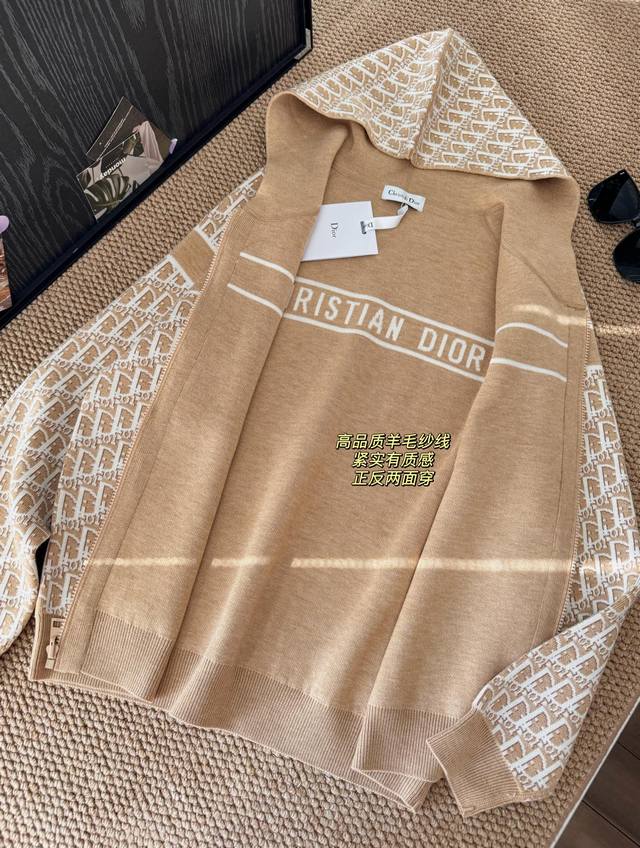 Product Name: High-Quality Dio* Monogram Full-Print Double-Sided Wool and Cashmere Knit Hooded Zipper Cardigan