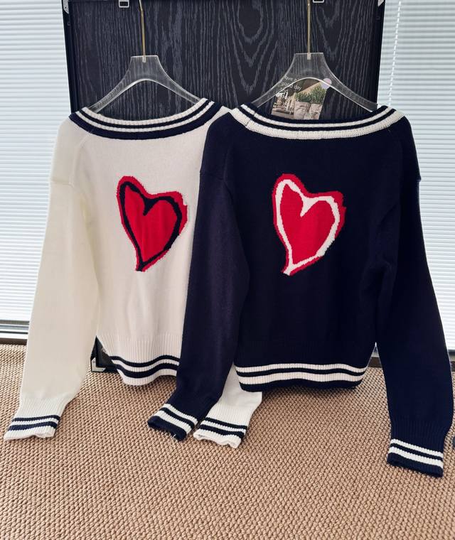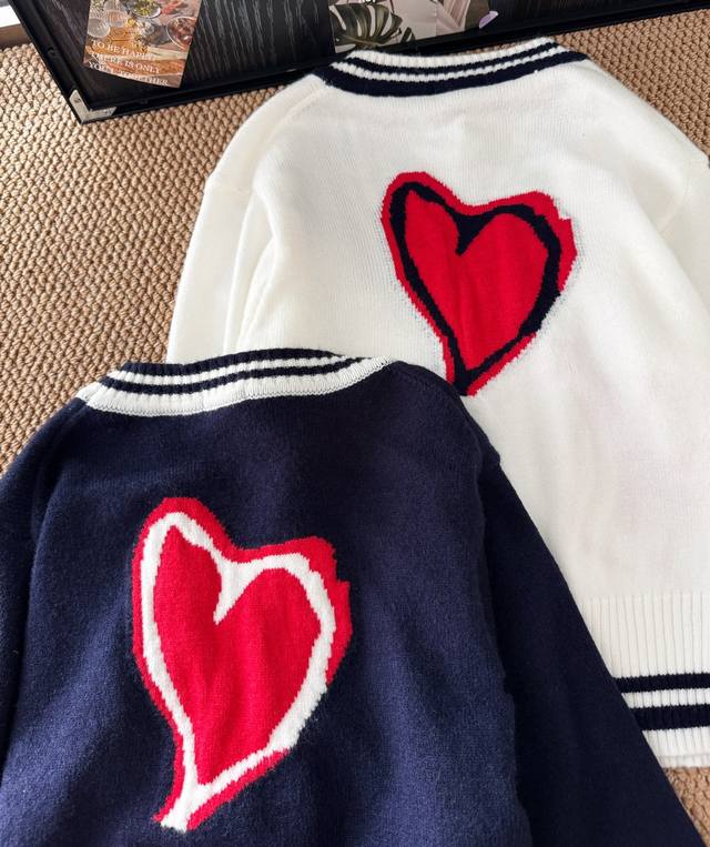 Limited Edition! Creamy white and navy are retro and stylish. The V-neck design is super slimming and instantly elongates the neck line. The digital heart embellishment on it is just right, adding a sense of refinement. It is comfortable and versatile!