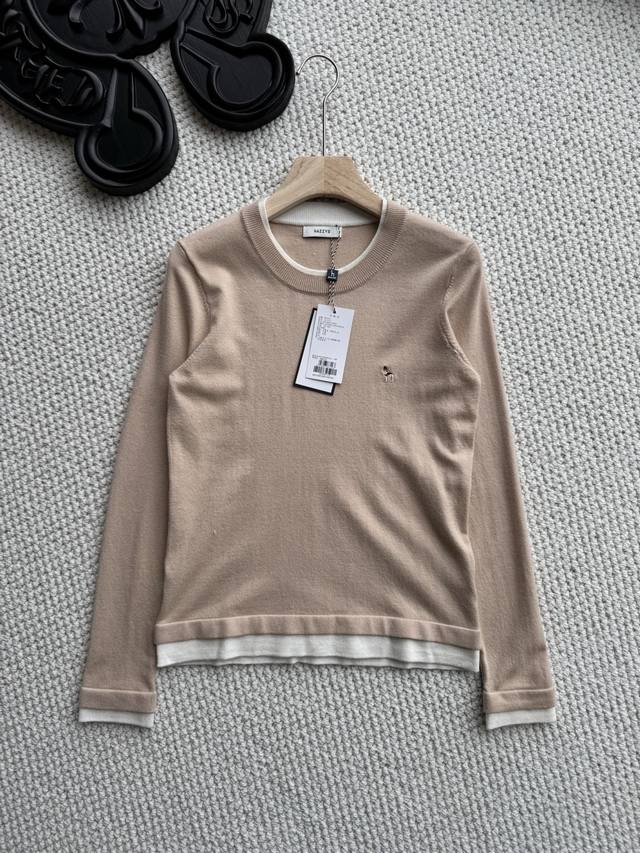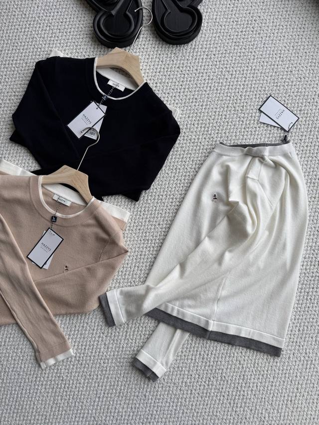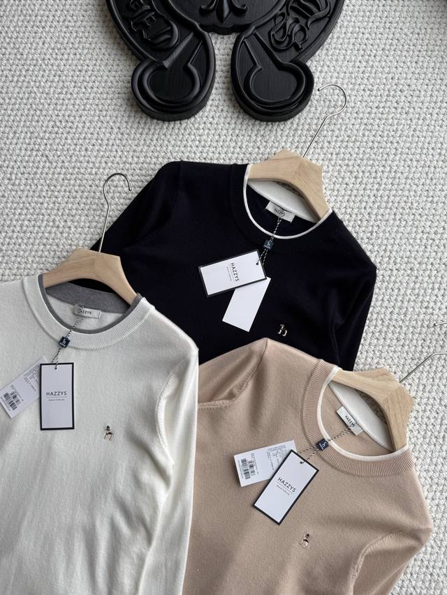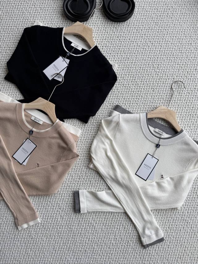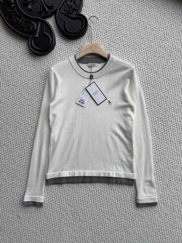 Pure original, company order shipment! A stylish two-piece Hazzys long-sleeved wool sweater for women, perfect for autumn and commuting. With your autumn wardrobe ready, this special garment will become a treasured piece, avoiding the common look of others. This Hazzys wool sweater will truly rescue you from a day of laziness. Made of a cotton-wool blend, it's delicate, soft, and comfortable to the touch. The exquisite dog logo embroidery is a perfect finishing touch. The quality is effortlessly excellent. The fitted cut, combined with clear shoulder and neck lines, exudes sophisticated elegance! The two-piece design also makes it stylish enough to wear alone. Let's embrace autumn lightly and say goodbye to heaviness! Colors: Off-white, Khaki, Navy Blue; Sizes: 155, 165.