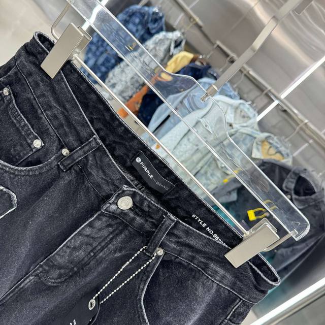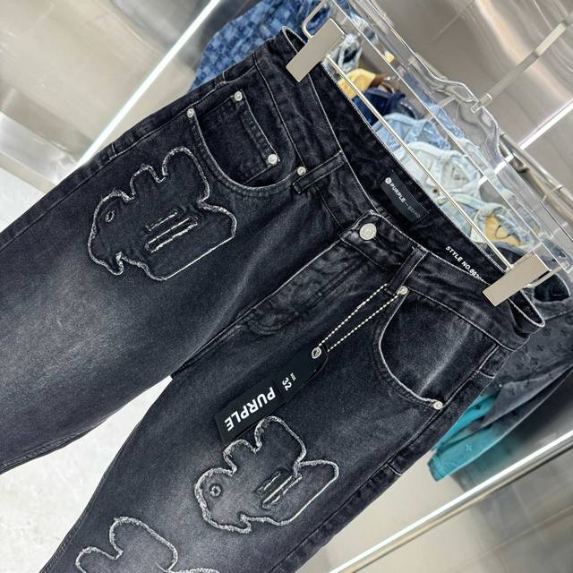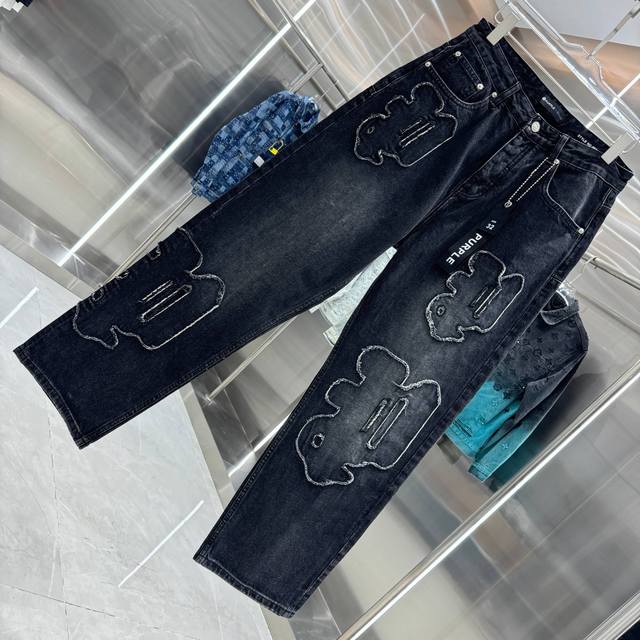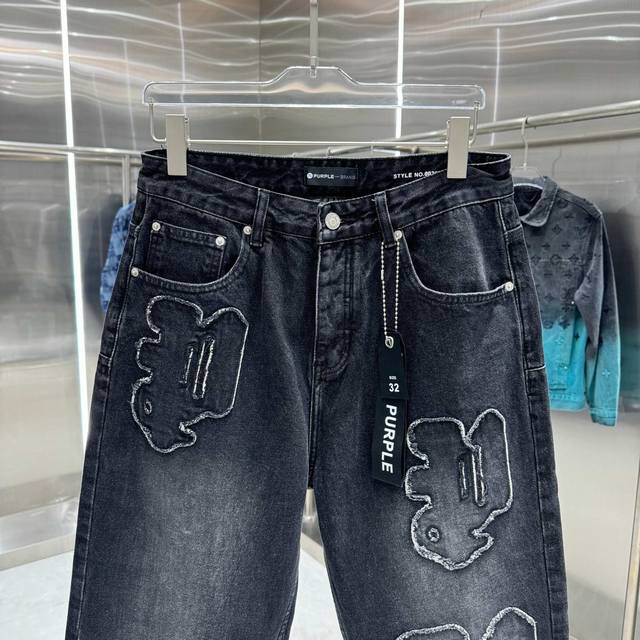purple Brand Distressed Embroidery Workwear Streetwear Loose Straight Leg Jeans Color: Black Sizes: 30 32 34 36 38 DDD