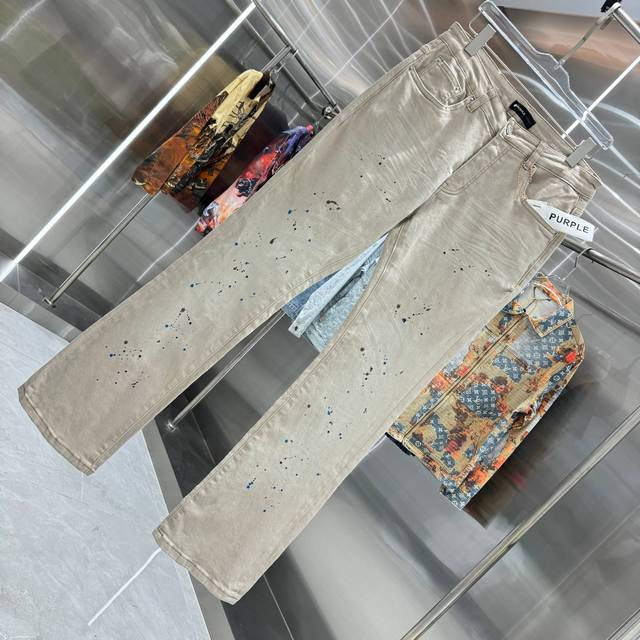 purple Brand Graffiti Art Street Style Flared Stretch Jeans Color: Apricot Sizes: 30 32 34 36 38 DDD