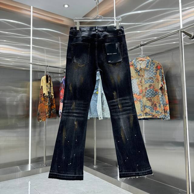 / purple Brand Graffiti Art Street Style Flared Stretch Jeans Color: Black Sizes: