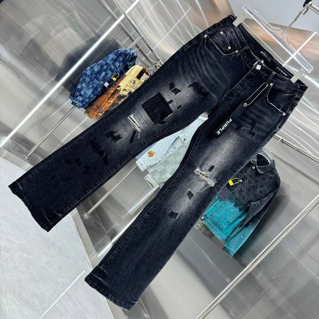 purple Brand Ripped Street Style Flare Stretch Jeans, Black, Sizes 30, 32, 34, 36, 38 (DDD)