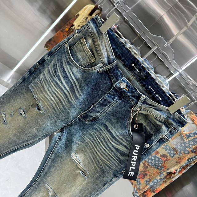purple Brand Ripped Street Style Flare Stretch Jeans, Blue, Sizes 30, 32, 34, 36, 38 (DDD)