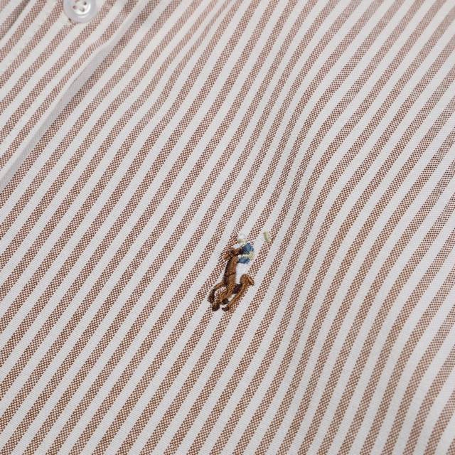R42 Polo Ralph Lauren Oxford Striped Logo Embroidered Button-Down Collar Long-Sleeve Casual Shirt (
