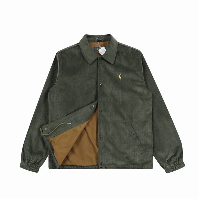 R48 Polo Ralph Lauren Retro Corduroy Coach Jacket, Old Money Style Coat. This jacket uses corduroy, a representative fabric of autumn and winter, with a thick texture and soft touch. It features a high-end design and classic polo embroidery, making it a design highlight. It's perfect for pairing with sweatshirts and hoodies to create a cute and casual street style. As an everyday outerwear piece for autumn and winter, adding it to your wardrobe will definitely make it a staple! Custom button details and high-quality hardware. Colors: Black, Navy, Brown, Burgundy, Dark Green. Size: S, M, L, XL. Length: 70, 71, 73, 75 mm; Chest: 112, 118, 124, 130 mm; Shoulder Width: 48, 50, 52, 54 mm; Sleeve Length: 66, 67, 68, 69 mm.