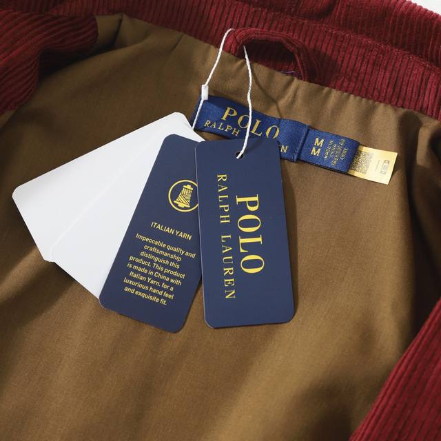 R48 Polo Ralph Lauren Retro Corduroy Coach Jacket, Old Money Style Coat. This jacket uses corduroy, a representative fabric of autumn and winter, with a thick texture and soft touch. It features a high-end design and classic polo embroidery, making it a design highlight. It's perfect for pairing with sweatshirts and hoodies to create a cute and casual street style. As an everyday outerwear piece for autumn and winter, adding it to your wardrobe will definitely make it a staple! Custom button details and high-quality hardware. Colors: Black, Navy, Brown, Burgundy. Size: S, M, L, XL. Length: 70, 71, 73, 75 mm; Chest: 112, 118, 124, 130 mm; Shoulder Width: 48, 50, 52, 54 mm; Sleeve Length: 66, 67, 68, 69 mm.