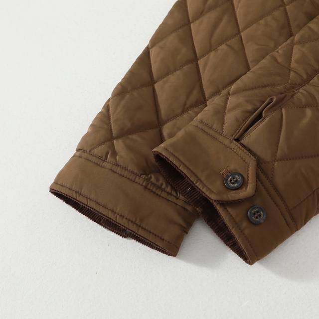 R57 Ralpah Lauren Diamond Pattern Stand Collar Old Cadre Cotton Jacket, Unisex, British Retro Style. Item No. Rl17381. Classic diamond pattern Henley collar thin cotton jacket, simple yet stylish. Corduroy trim cuffs and collar. Can be worn straight or folded. Semi-high collar with double button closure at the front. Full zipper at the front. Fabric has some water-resistant properties. Classic and timeless. Adjustable buckle at the back waist. Exquisite horse embroidery on the left chest. Retro and timeless. Colors: Black, Navy Blue, Brown, Army Green. Sizes: M, L, XL, XXL. Length: 67, 69, 71, 73. Chest: 126, 130, 134, 138. Shoulder Width: 54, 55.5, 57, 58.5. Sleeve Length: 66, 67, 68, 69.
