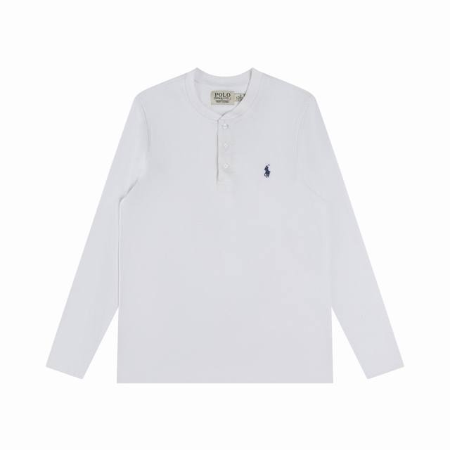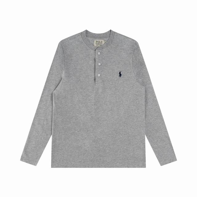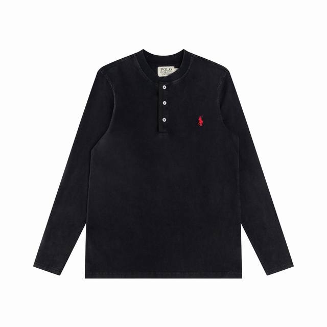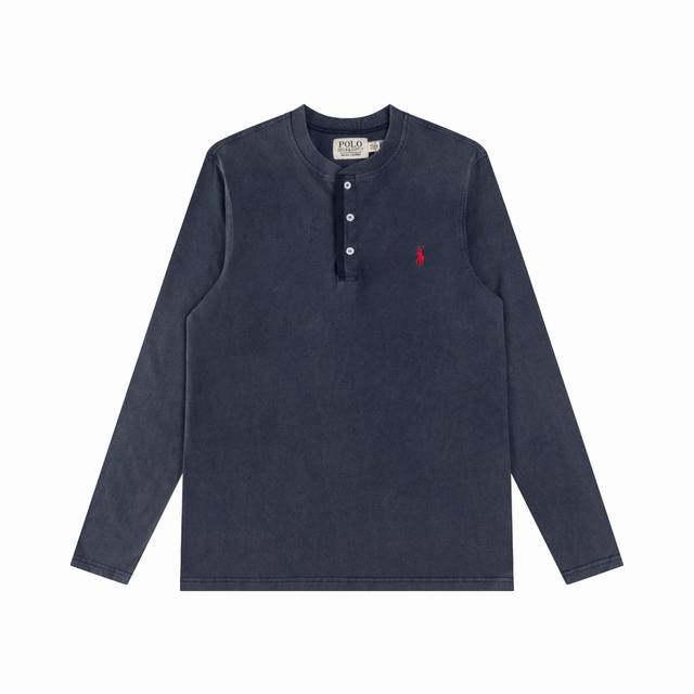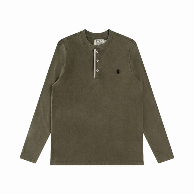 R85 Ralph Lauren five-color washed, heavily brushed, distressed, henley stand-up collar, open-chested, long-sleeved, thin sweatshirt