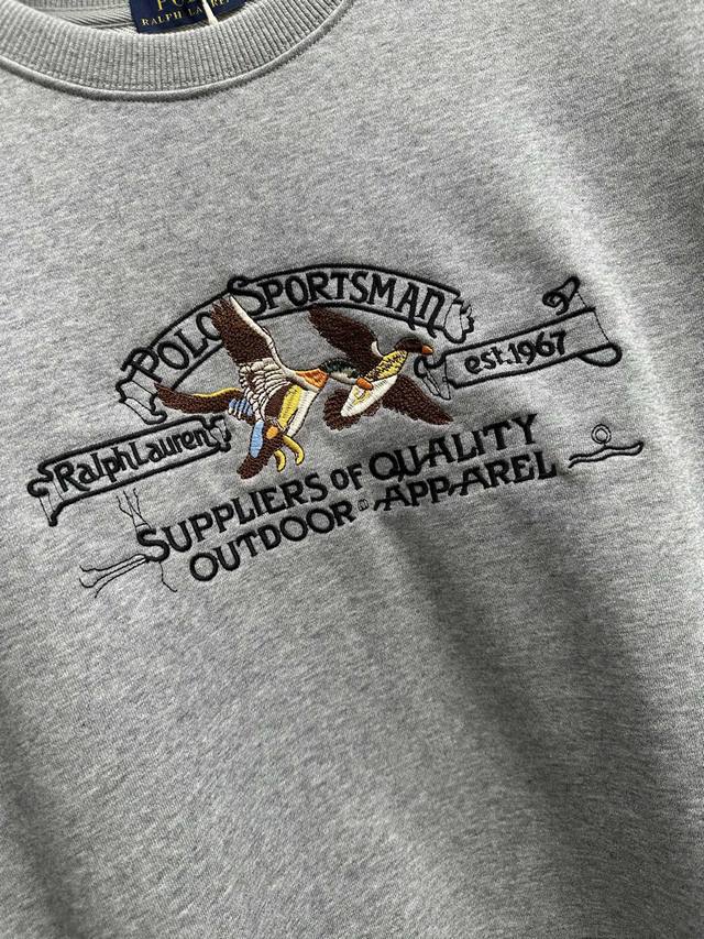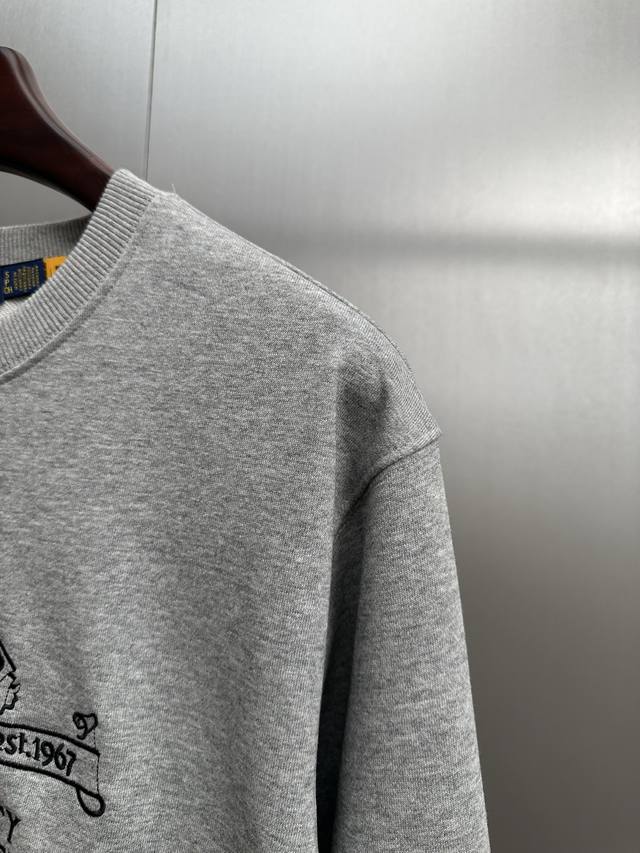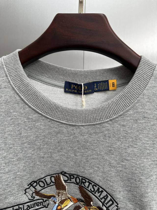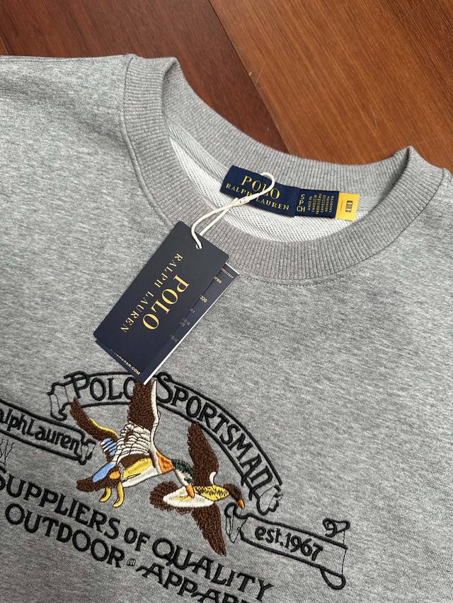 Ralph Lauren 2025 Fall/Winter New Terry Cloth Sweatshirt with Multi-Color Embroidered Logo. A youthful Ralph Lauren item, this sweatshirt is made of 60% cotton and 40% polyester, retaining the softness, comfort, and breathability of cotton while adding the durability and wrinkle resistance of polyester, making it more durable and easy to care for. Even in slightly cool weather, it won't feel stuffy. This fabric has a natural crispness and is not prone to pilling or deformation. The pigeon and large embroidered logo on the chest are vibrant and three-dimensional, adding a touch of liveliness and fun to the entire sweatshirt. Easy to wear, suitable for all ages and genders. Complete accessories included! Color: Heather Gray Size: S-XL