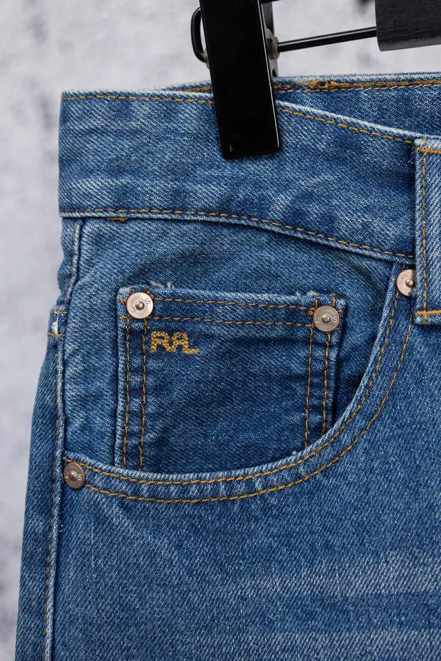 Ralph Lauren 2026Rrl Vintage Ripped Jeans - A Must-Have for American Retro Style. Classic Loose Fit: 13.75oz Japanese selvedge denim, Made in the USA, 100% cotton, excellent quality! Durable and Shrink-Resistant: Mechanical pre-shrinking technology ensures a perfect fit even after long wear. The vintage wash adds to its charm with each wear. Sizes: 28-34. Color: Denim Blue.
