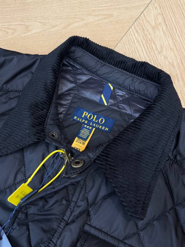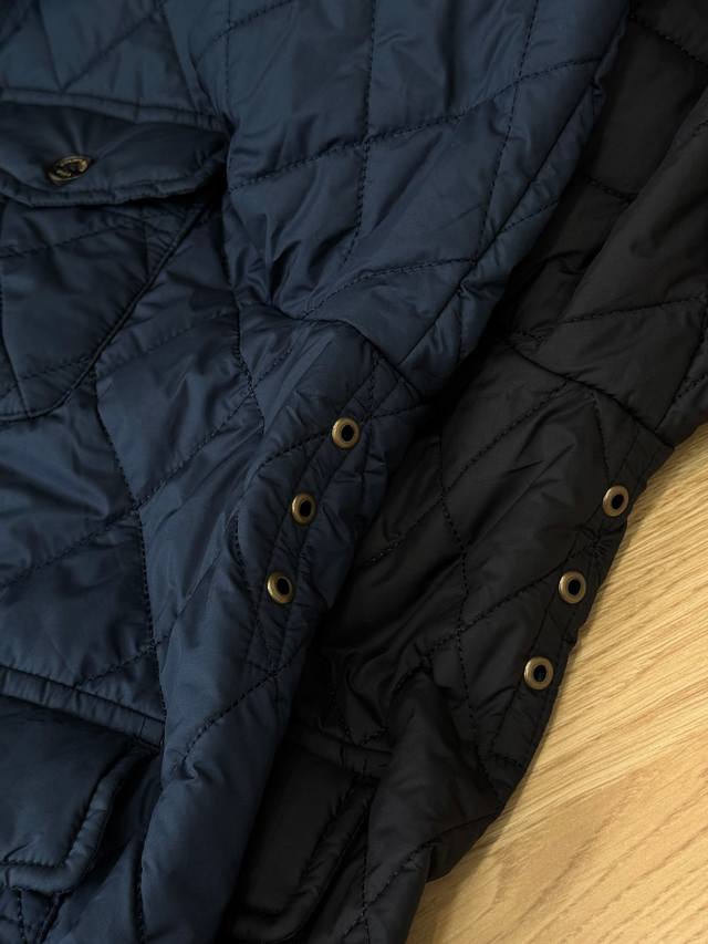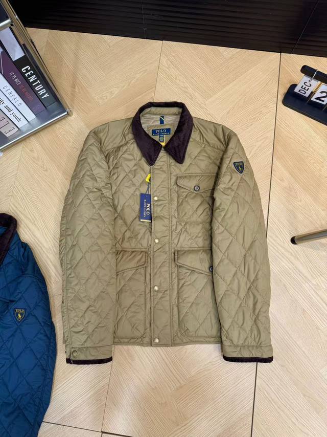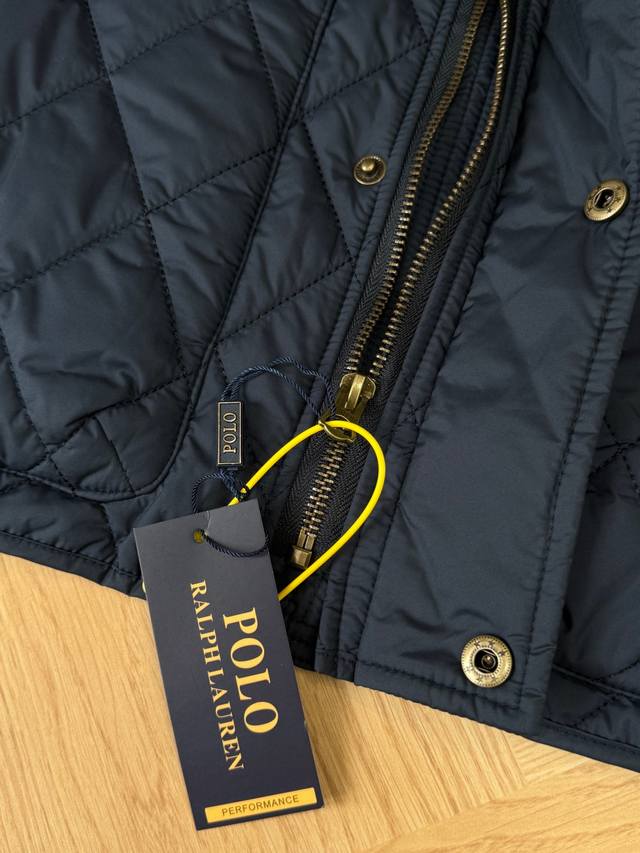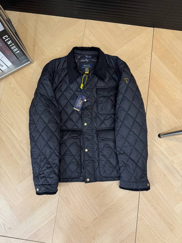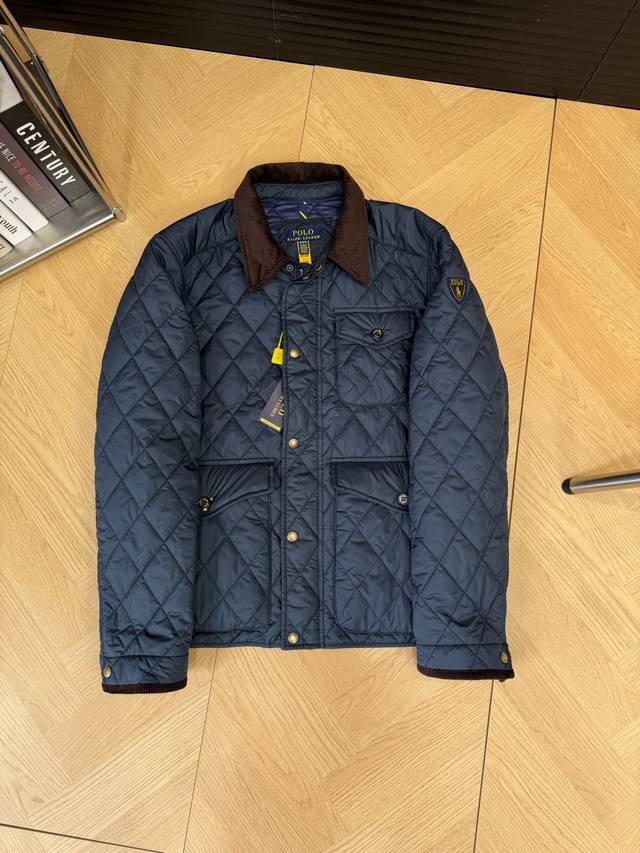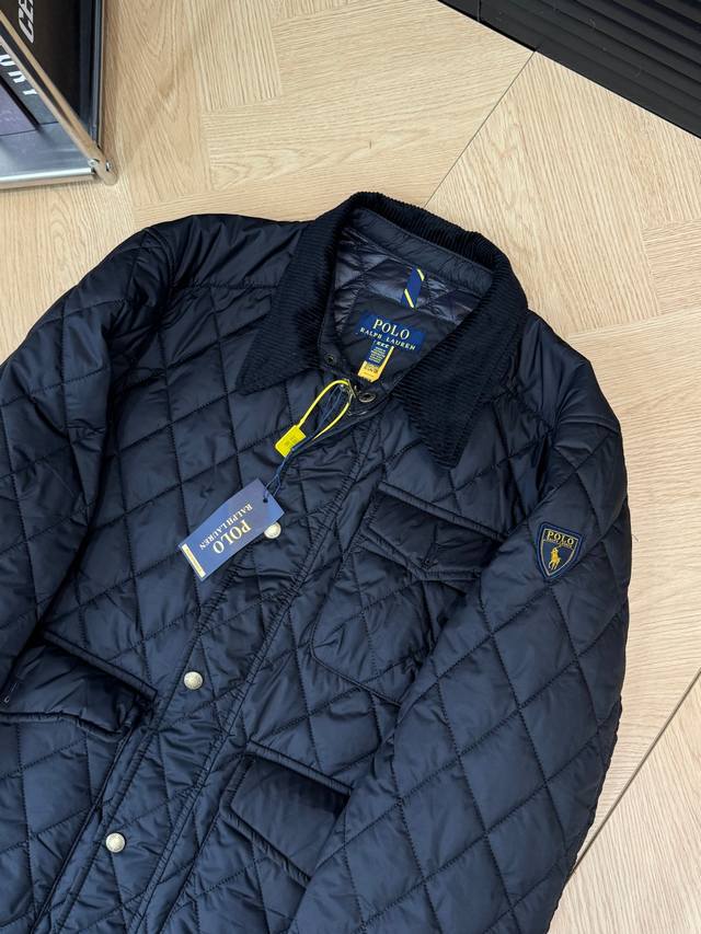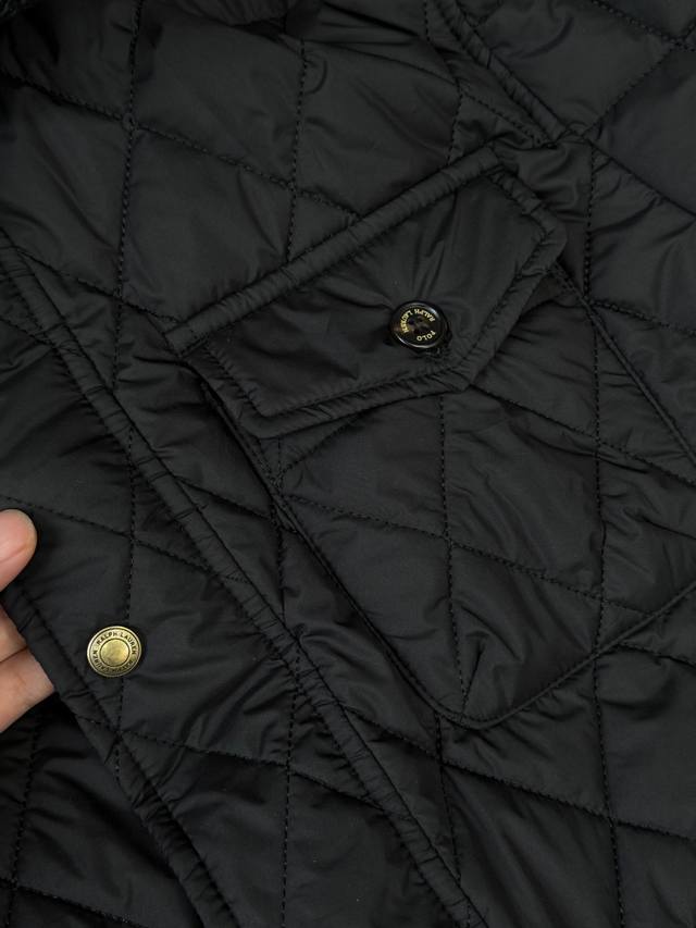 Ralph Lauren Classic Old Money Style Workwear Diamond Pattern Retro Cotton Jacket, Heavy-duty with many details, imported machine-pressed stitching, three-dimensional tailoring. Classic H-line silhouette for layering in autumn and winter, a must-have for warmth. British style, versatile and stylish, lightweight and warm fabric. Custom-made metal snap buttons with clear logo engraving add to the overall look. The garment has smooth, exquisite lines and a sophisticated design. Made with anti-padded fabric to lock in warmth and a soft touch. The entire piece uses a diamond pattern quilting process, its three-dimensional structure is fashionable, and it's sure to turn heads. This cotton jacket uses 37.5