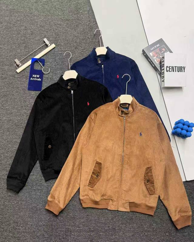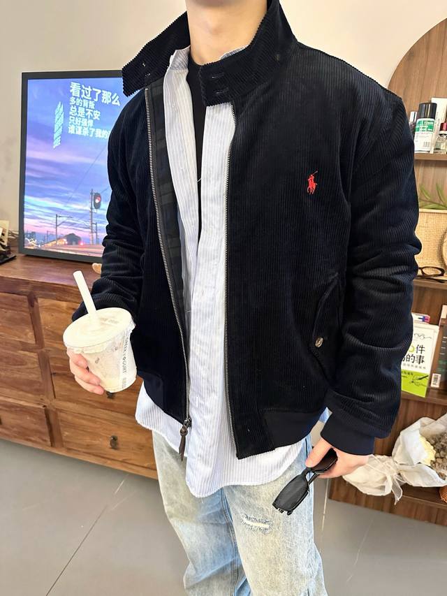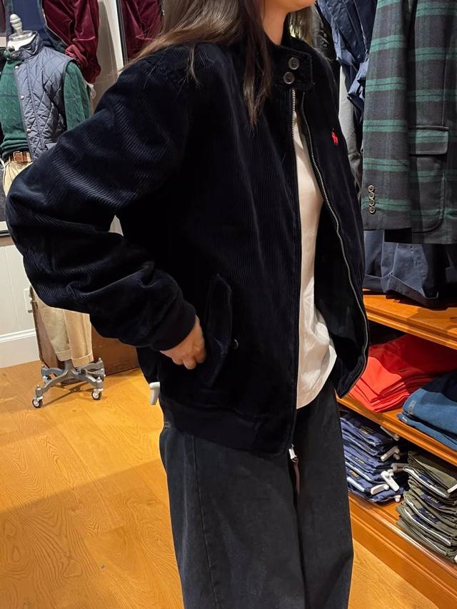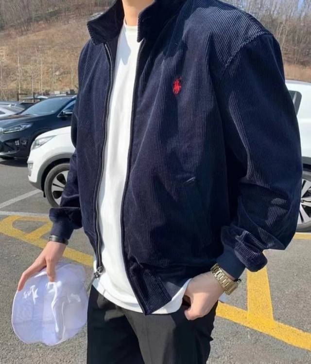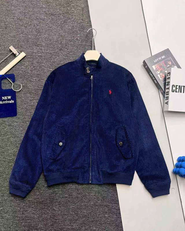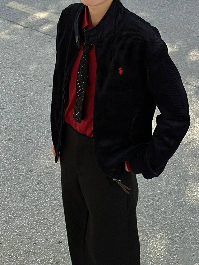 Ralph Lauren Harrington Old-Money Style Polo Ralph Lauren Fw22 Solid Color Logo Embroidered Corduroy Jacket (