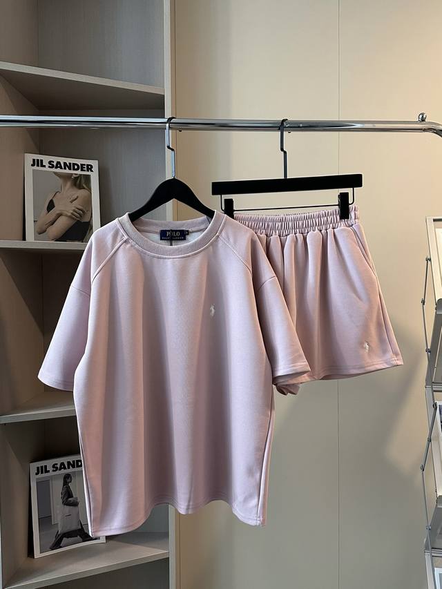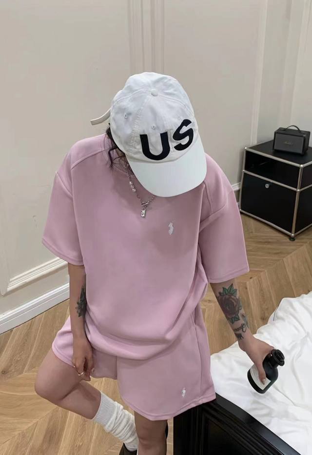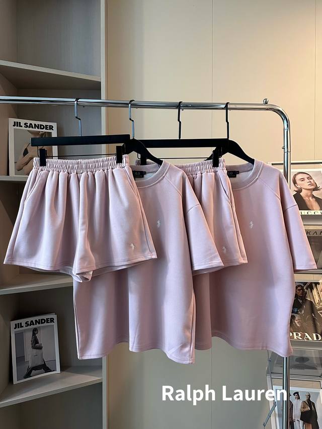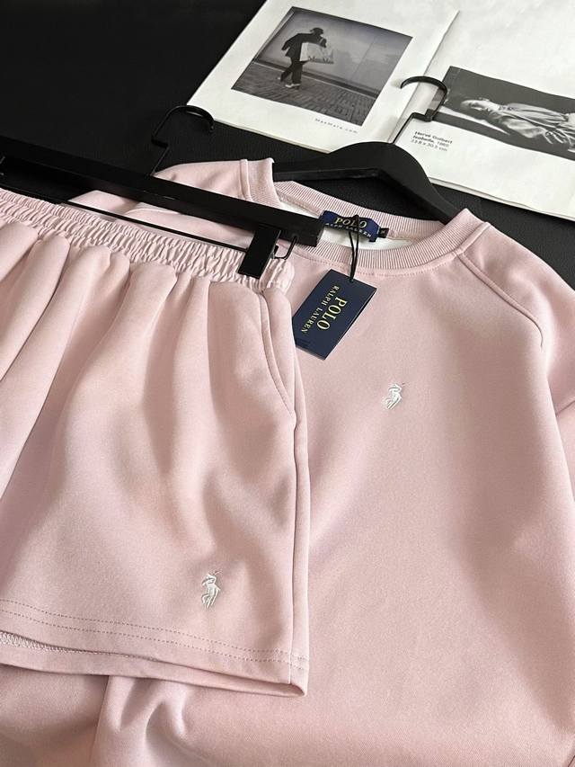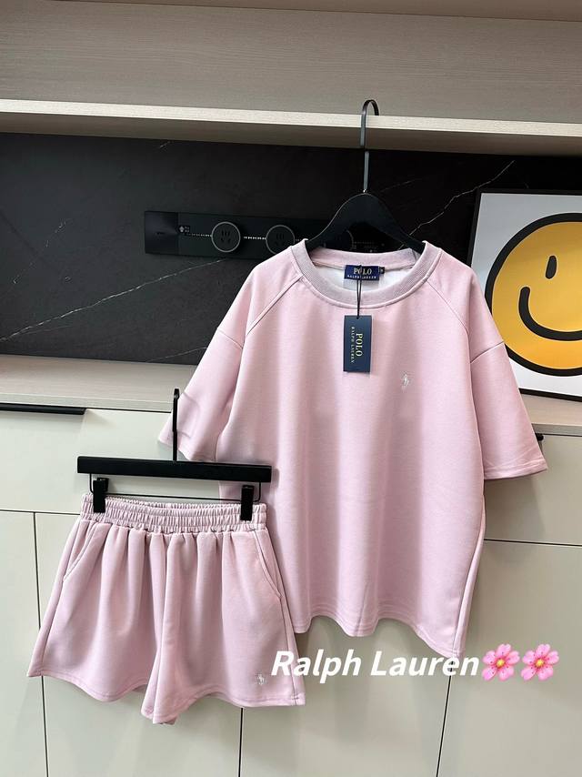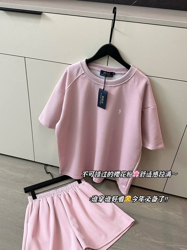 Ralph Lauren Pony Sakura Pink Embroidered Logo Short Sleeve Shorts Set The Saku