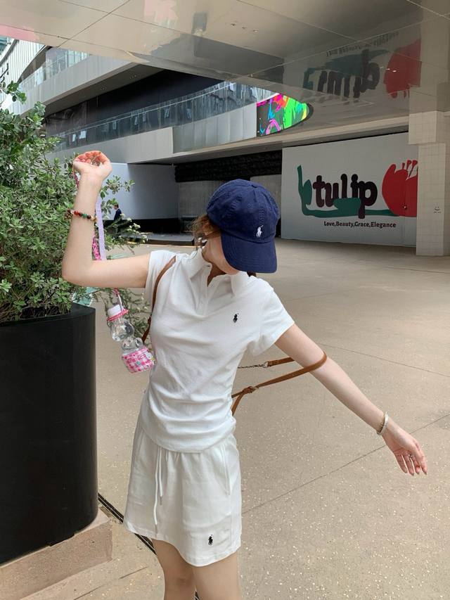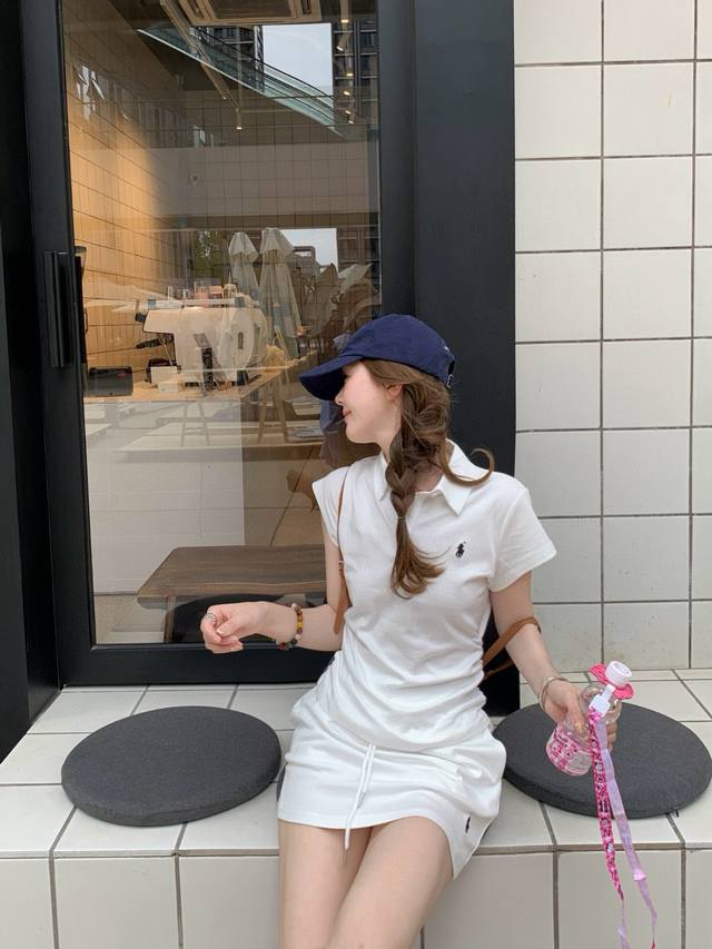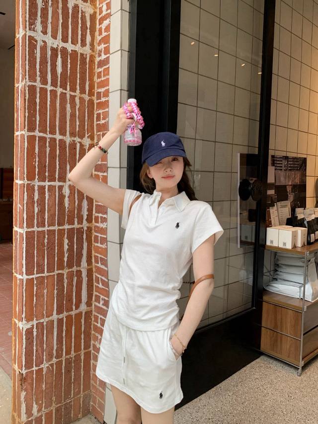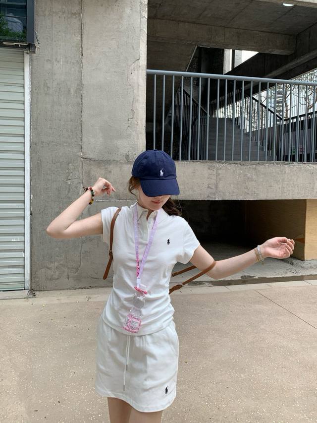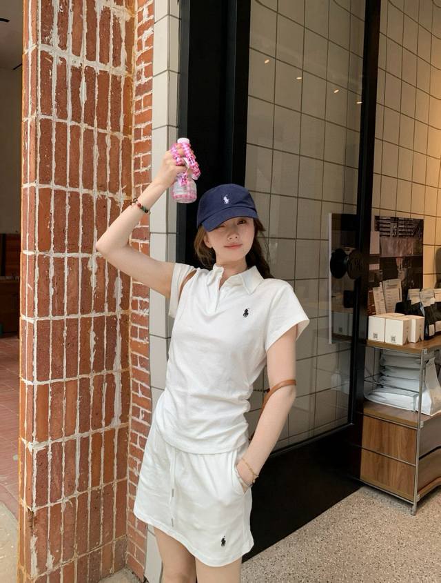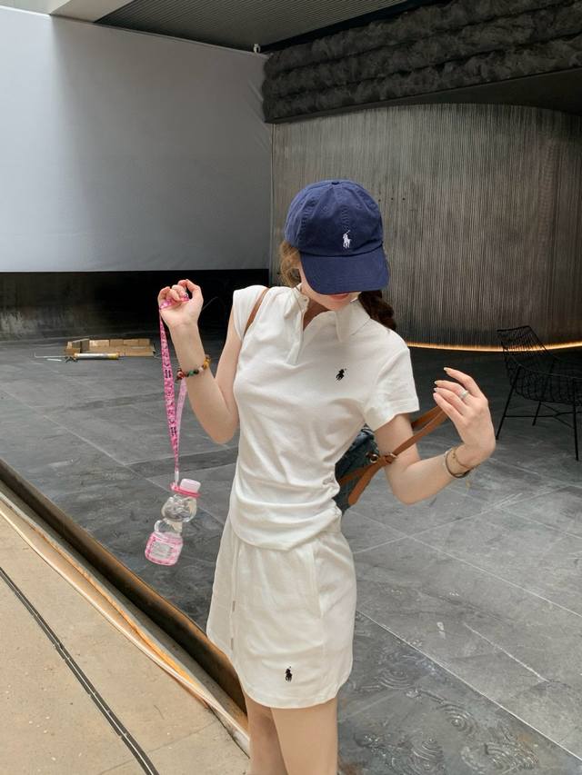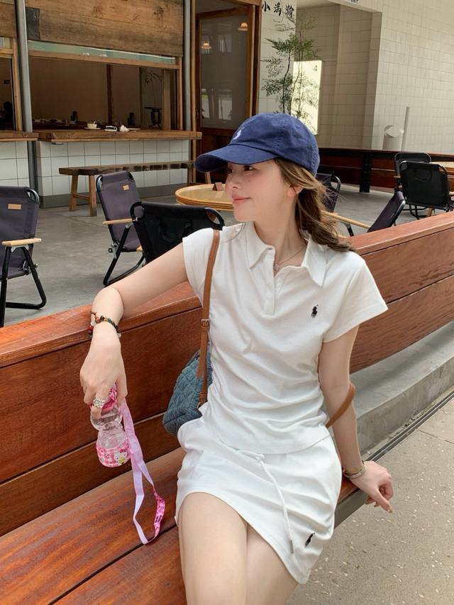 Ralph Lauren Ralph Lauren Rl pony embroidered lapel short-sleeved pleated waist top drawstring elastic waist skirt suit
