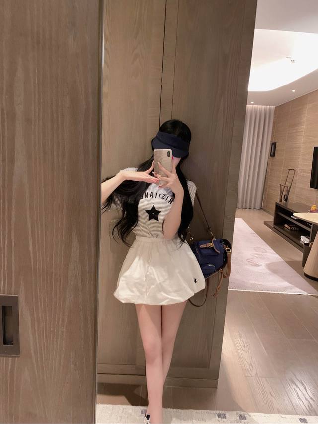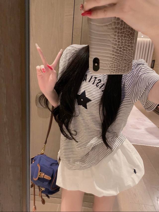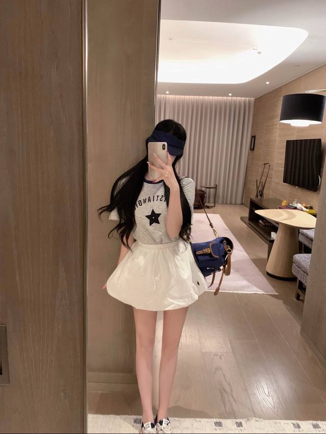 Ralph Lauren Ralph Lauren Rl pony embroidery drawstring elastic waist cotton and linen bubble skirt