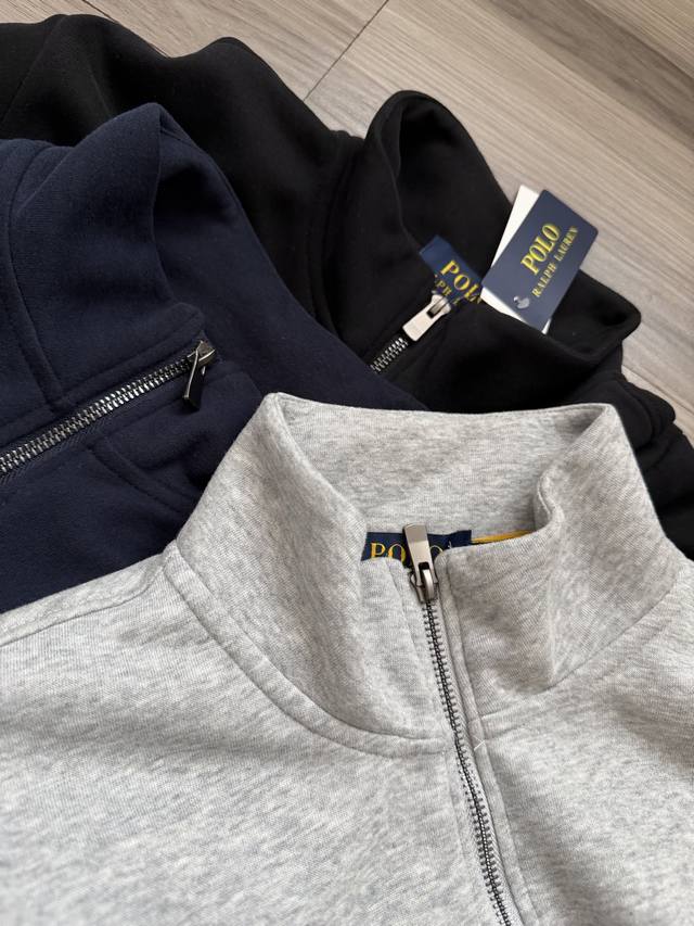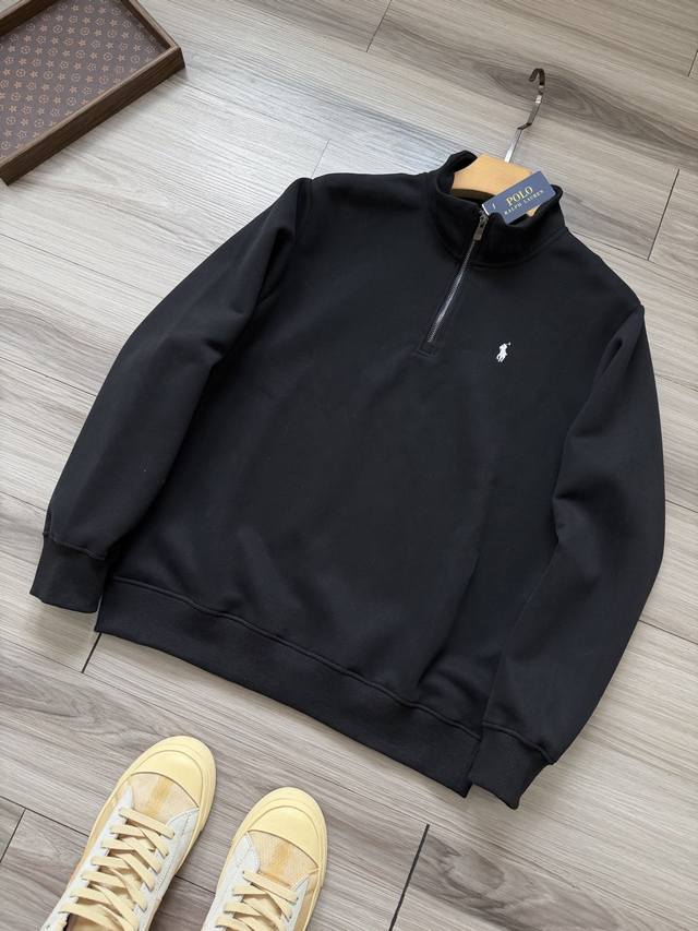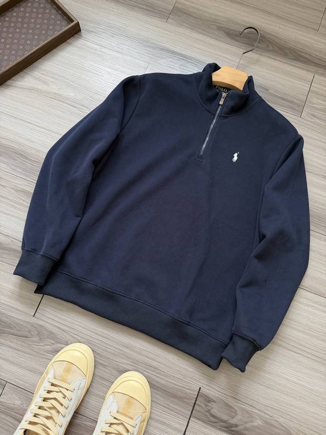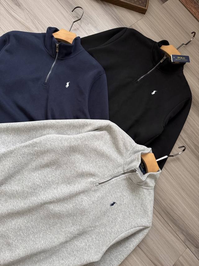 Ralph Lauren | Ralph Lauren tricolor pony logo embroidered half-zip stand-neck sweatshirt for men and women.