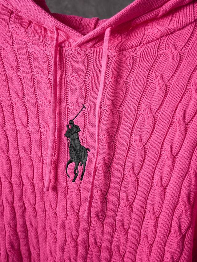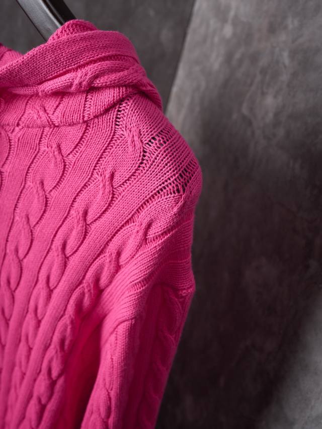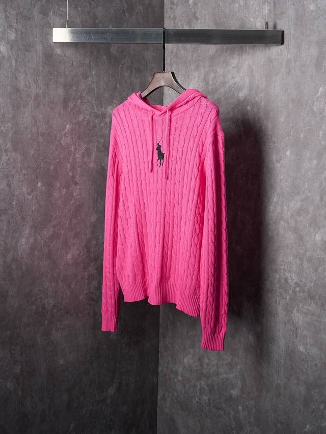 Real item hanging photo Ralph Lauren Pony Embroidered Hooded Cable Knit Sweater DDD Ddd In stock SML XL DDD Custom-knitted fleece-feel wool cable knit, light and warm as a cloud, comfortable against the skin. A fiery pink canvas infused with a touch of black as its soul, a highlight that dares to stand out yet understands restraint. The iconic horse logo embroidery adorns the chest, an untimely yet fatal romance, a gentleman's style philosophy. The classic cable knit structure design injects soul, with precise and orderly arrangement. The hood dances with strength and softness, giving classic a futuristic feel, making retro no longer old-fashioned, upholding that eternal elegance and taste. DDD Uses imported machine embroidery technology, employing an advanced computer control system and precision mechanical parts to achieve high precision in the iconic pony embroidery, with smooth and delicate lines. DDD Three-dimensional cable knitting, through the clever shifting and interweaving of loops, cross-shifts adjacent loops to create a twisted cable knit effect, with smooth and neat lines, time-consuming and laborious. DDD The garment washing and softening deodorizing process uses professional washing equipment and specific detergents to deeply clean and deodorize clothes, improving their feel and appearance, and ensuring a better fit.