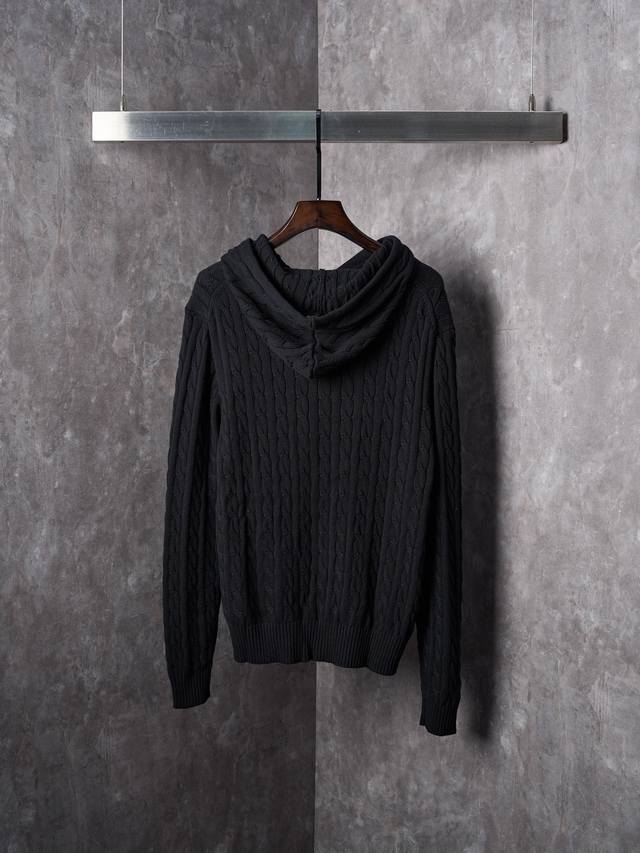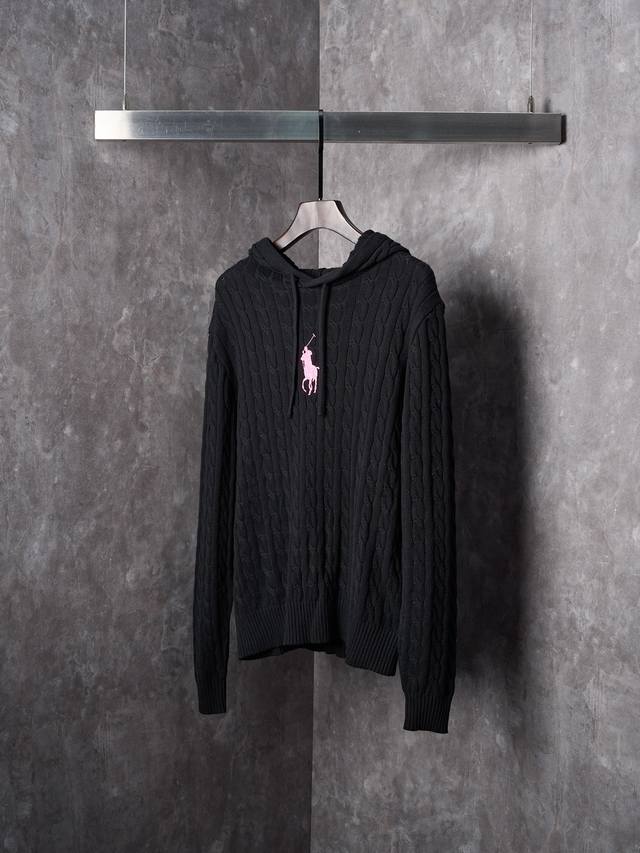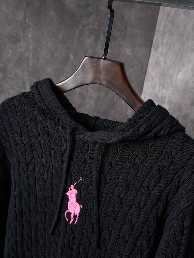 Real item hanging photo Ralph Lauren Pony Embroidered Hooded Cable Knit Sweater DDD Ddd In stock SML XL DDD Custom-knitted fleece-feel wool cable knit, light and warm as a cloud, comfortable against the skin. Using charcoal black wool as the canvas, a touch of pink is added as a highlight, giving the calm black an instant sense of breathing rhythm. The iconic horse logo embroidery adorns the chest, an untimely yet fatal romance. A gentleman's style philosophy. The classic cable knit structure design is infused with soul, arranged precisely and orderly. The hood dances with strength and softness, giving the classic a futuristic feel, making retro no longer old-fashioned, upholding that eternal elegance and taste. DDD Uses imported machine embroidery technology, employing an advanced computer control system and precision mechanical parts to achieve high precision in the iconic pony embroidery, with smooth and delicate lines. DDD Three-dimensional cable knitting, through the clever shifting and interweaving of loops, cross-shifts adjacent loops to create a twisted cable knit effect, with smooth and neat lines, time-consuming and labor-intensive. DDD The garment washing and softening deodorizing process uses professional washing equipment and specific detergents to deeply clean and deodorize clothes, improving their feel and appearance, and ensuring a better fit.