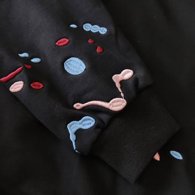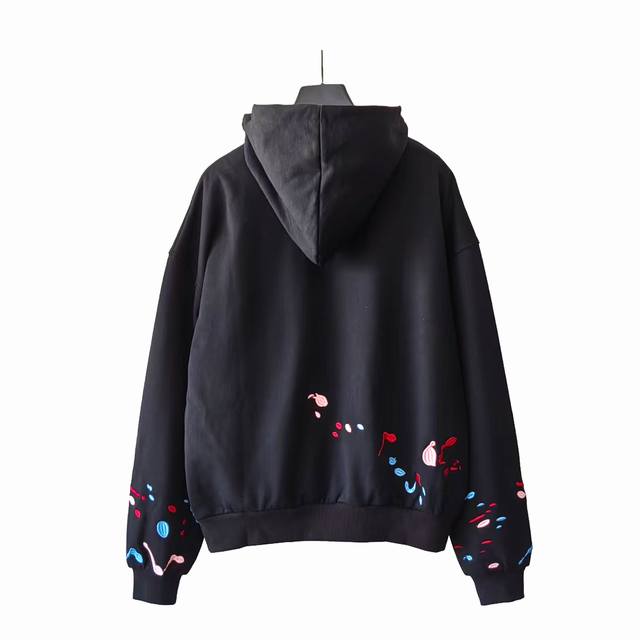 Real shot details + size chart Ddd Gb-Goodbrand Candy Embroidery Splatter Paint Cardigan Hooded Sweatshirt Ddd Unisex, 500g heavyweight pure cotton fabric, original 1:1 Ddd Colors: Black, White. Kq032 Ddd Sizes: SML XL. DDD