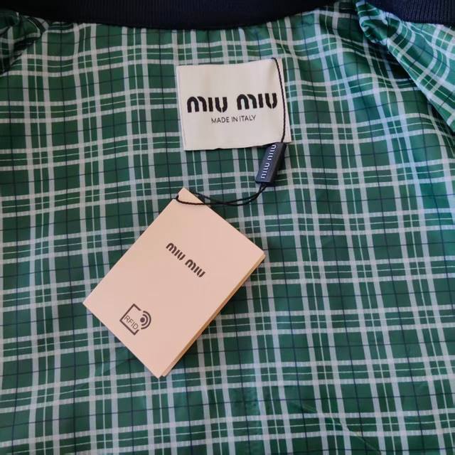 Real shot details + size chart Ddd Miu Miu laser embroidered stand collar long-sleeved jacket Ddd Side flap design old cadre style Ddd Wang Yuan's same style Ddd Full set of custom accessories and perfect details Ddd Color: Lime Navy Blue 086 Ddd Size: S-XL DDD