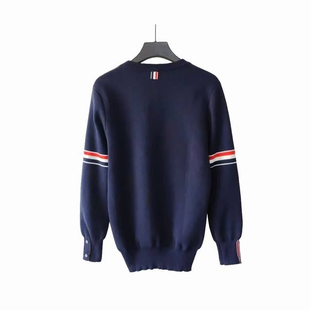 Real Shot Details + Size Chart DDD Thom Browne Classic Thick Double Sleeve Label Crew Neck Sweater DDD Made of wool blend, the classic double sleeve labels are woven with tightly stitched stitches using imported Japanese automatic knitting machines, featuring red, white, and blue double sleeve labels. The side buttons are natural shell-shaped. The fit can be fitted or loose, comfortable and breathable, unisex. DDD All tags and labels are included, and a full gift box can be added. DDD Colors: White, Navy Blue, Gray Tb12 DDD Sizes: 1 2 3 4 DDD