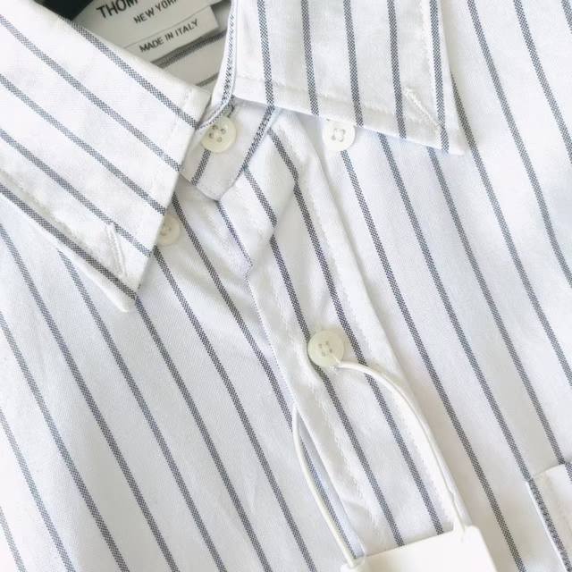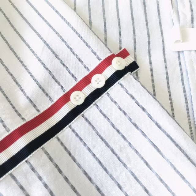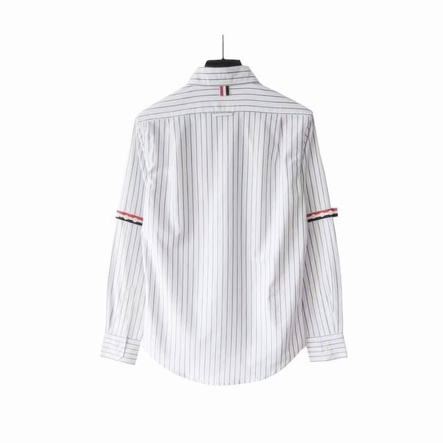 Real Shot Details + Size Chart Ddd Thom Browne Double-Sleeve Striped Long-Sleeve Shirt Ddd Fabric: Yarn-dyed stripes made of 100% Xinjiang long-staple cotton. Tb double sleeve webbing. Signature new design. Red, white, and blue webbing embellishes the back collar. Ddd Buttons: Natural shell buttons. Factory direct production, fine stitching, neat stitching. Details determine quality. Made in Italy. Shipped with original label, all three labels included. Standard packaging includes Tb lettering and a Tb dust bag. Can be added with a full Tb gift box. Fit: Loose or slim fit. Unisex. Tb063 Ddd Colors: White, Gray Ddd Sizes: 0 1 2 3 4 DDD