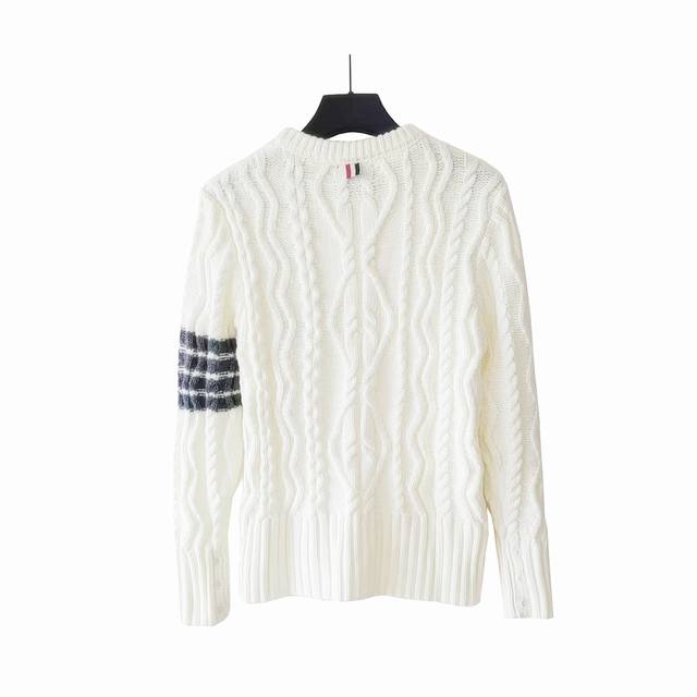Thom Browne. Four-stripe knitted square-shaped thickened crew neck sweater