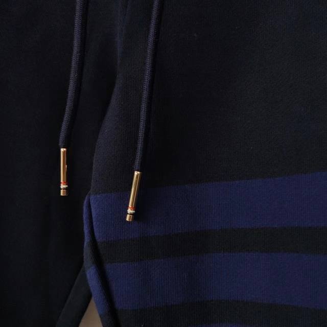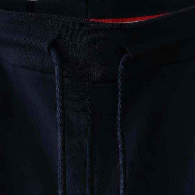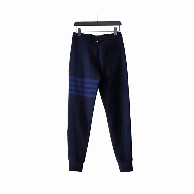 Tb trousers yarn-dyed classic grey and blue striped four-stripe long sweatpants Zp Fabric yarn-dyed custom 380g weight classic terry cotton High-definition reproduction of details Exquisite workmanship Using imported sewing equipment with fine stitch spacing Ribbed waistband Custom elastic woven hardware drawstring can be rotated