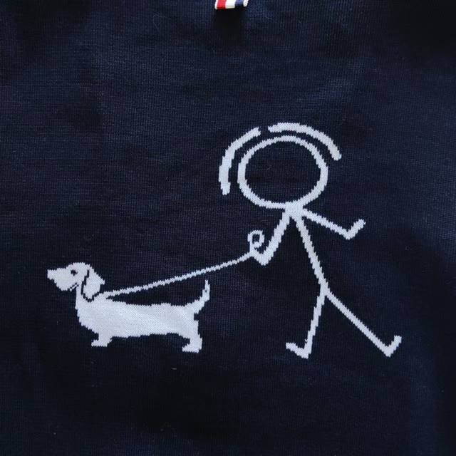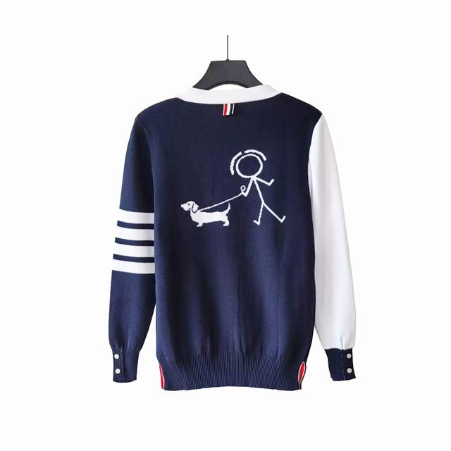 Thom Browne.Tb classic stick figure dog pattern knitted cardigan five-button cardigan