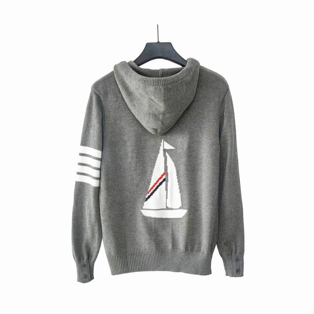 Thom Browne.Tb four-stripe sailboat pattern zip-up sweater