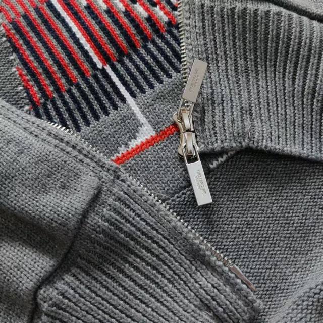 Tb sailboat pattern zip-up cardigan four-stripe wool blend sweater