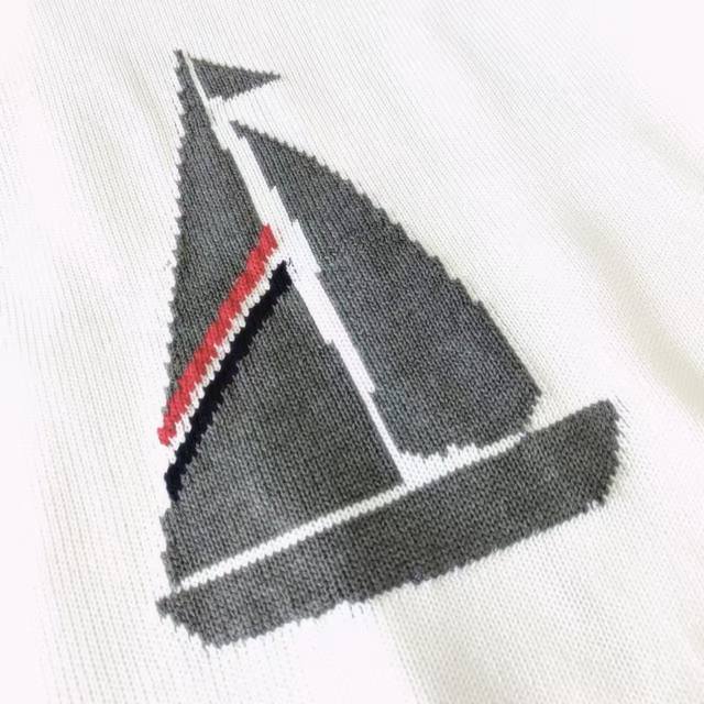 Tb sailboat pattern zip-up cardigan four-stripe wool blend sweater